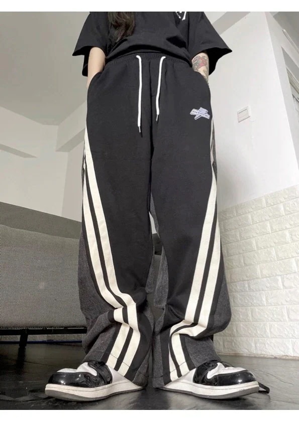 異素材MIXデニム スウェットデニム デニム スウェット ボトムス カジュアル ストリート アメカジ ユニセックス 切り替え バイカラー 配色 体型カバー D116