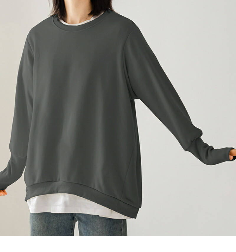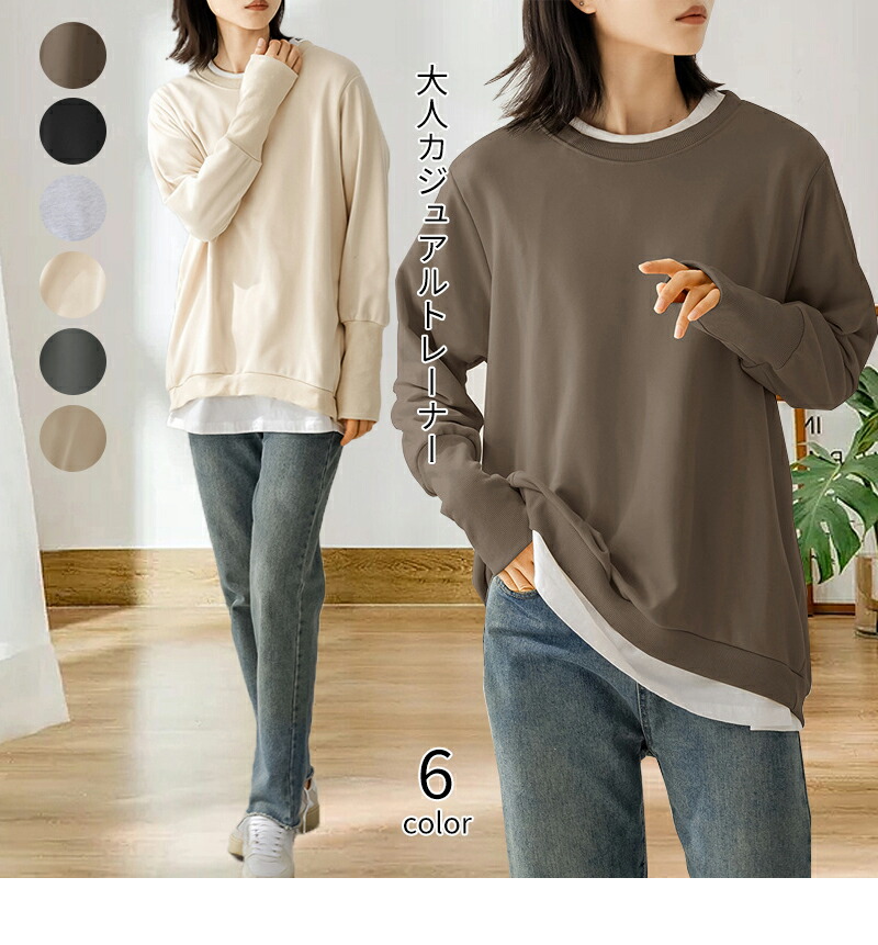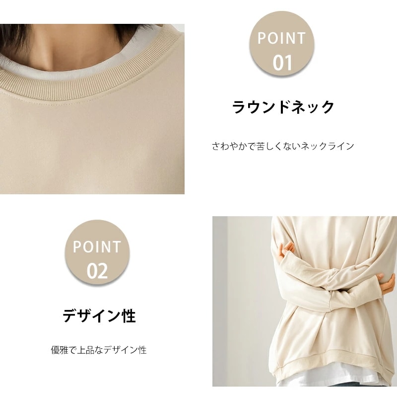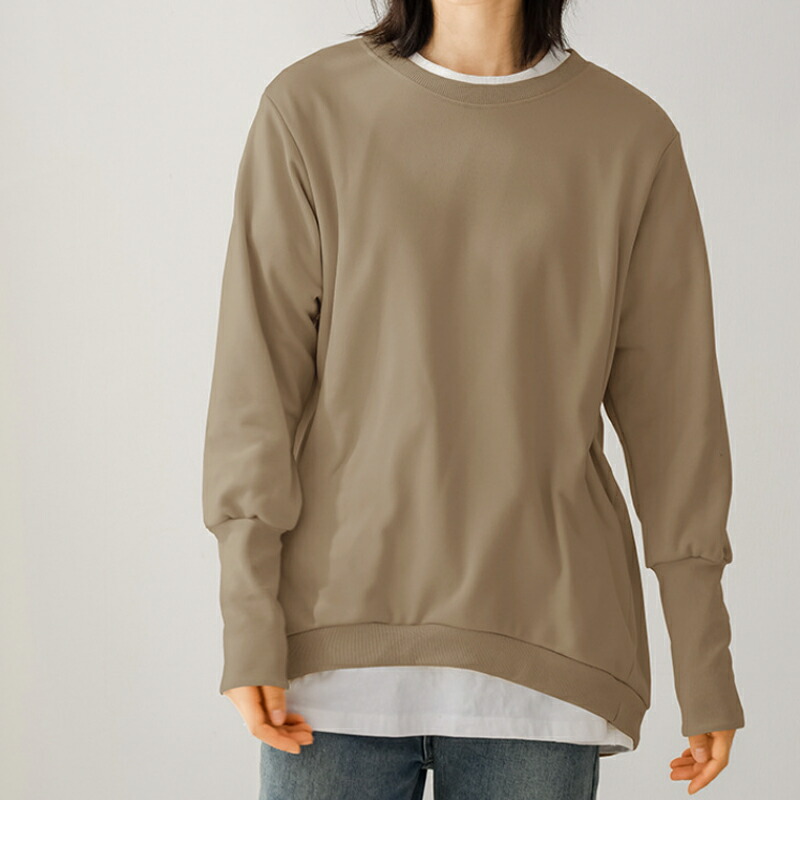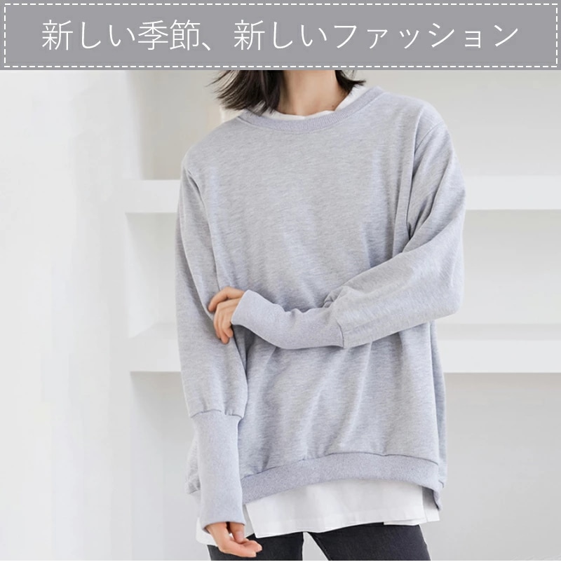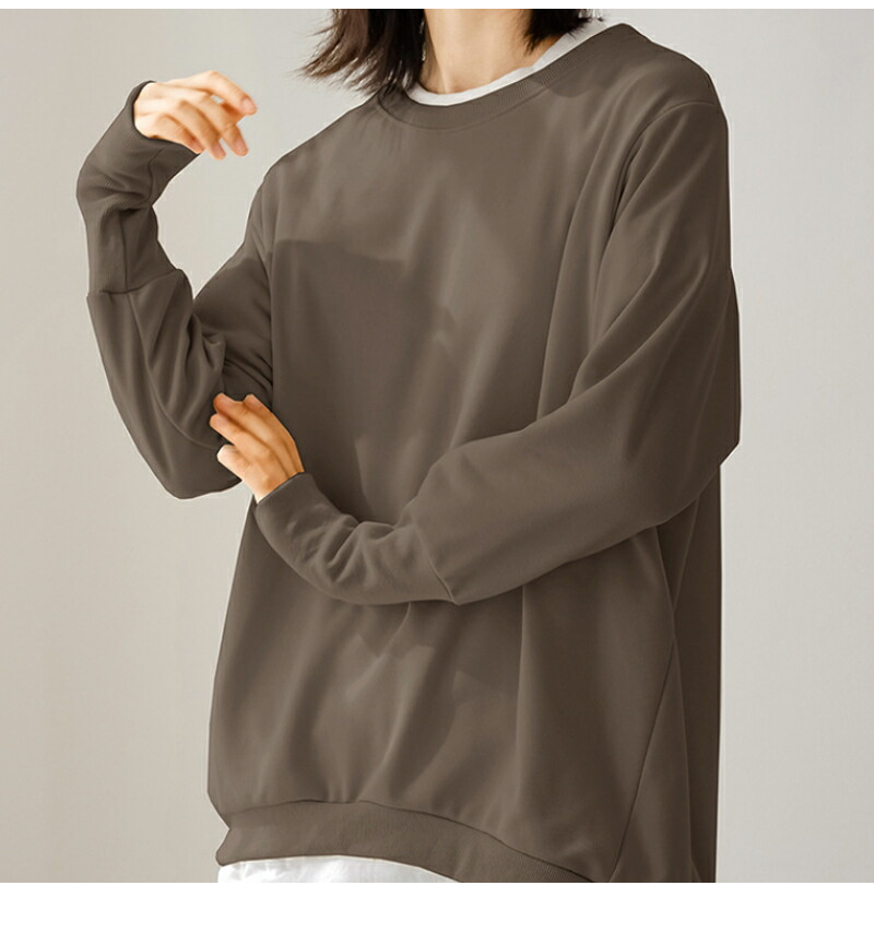 大人の抜け感 トレーナー レディース スウェット リブ長 大きいサイズ シンプル 長袖 ルームウェア 秋冬 オシャレ 楽ちん ラフ カジュアル