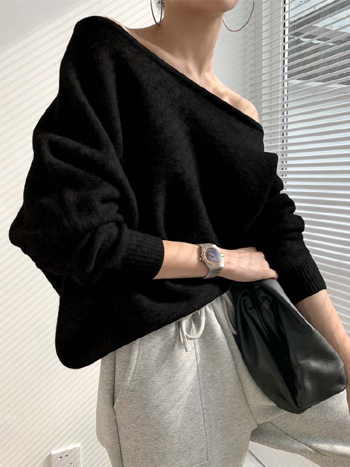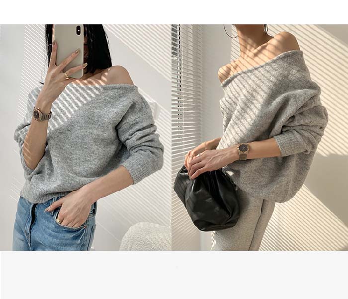 ニット オフショルダー レディース 長袖 オープンショルダー セータートップス フェミニン 着回し シンプル おしゃれ 大人 カジュアル こなれ感 春 秋 柔らかい 個性的 トレンド感