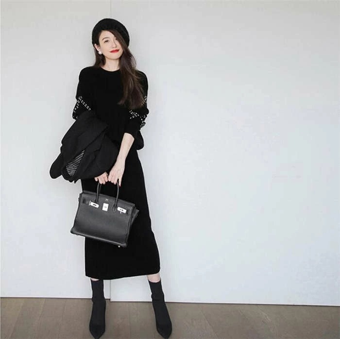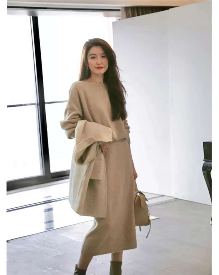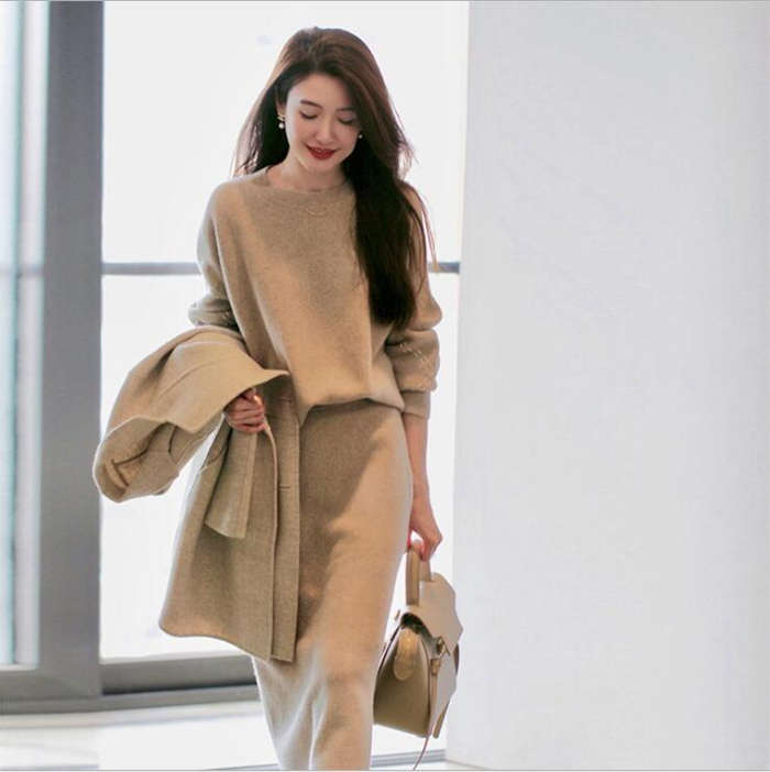 ニットセットアップ レディース セーター きれいめ ニットセーター 40代 秋冬 ニットスカート スカート 長袖 ニット セーター スカート セットアップ 無地 ロング丈 オシャレ 上品 韓国風 カジ