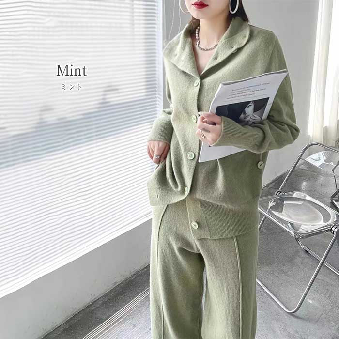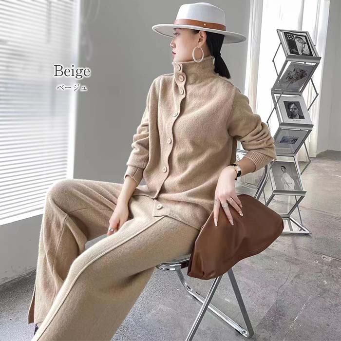 ニットセットアップ パンツ ニットパンツ レディース セットアップ ニット 秋冬 長袖 冬 カーディガン タートルネック セーター ワイドパンツ カジュアル ワンマイルウェア 2点セット 上下セット