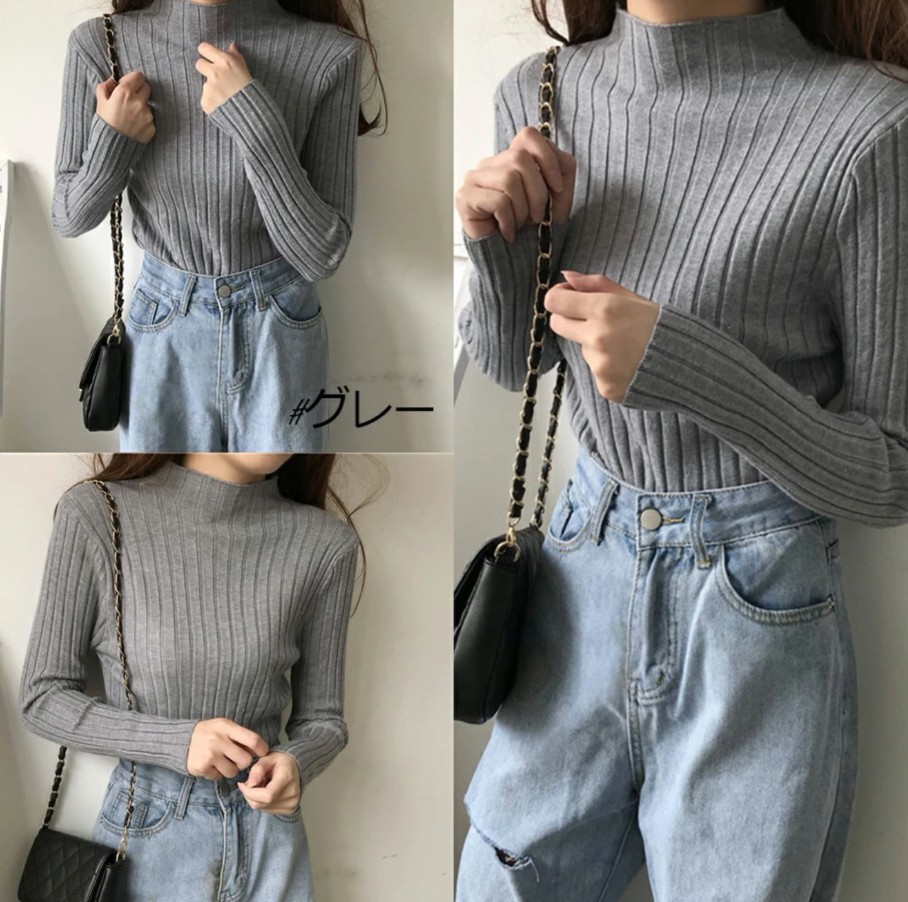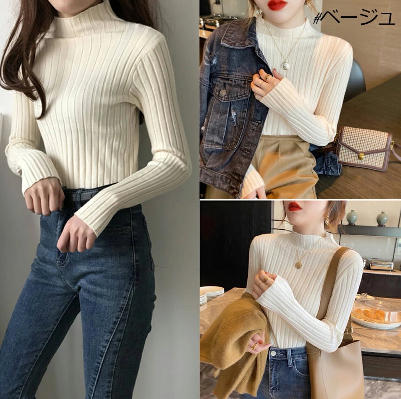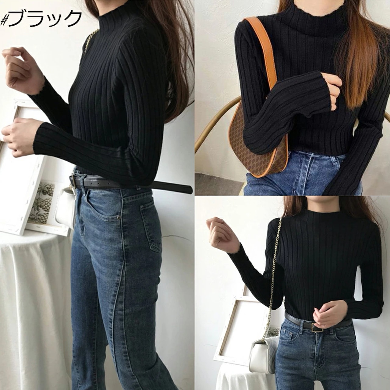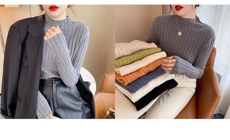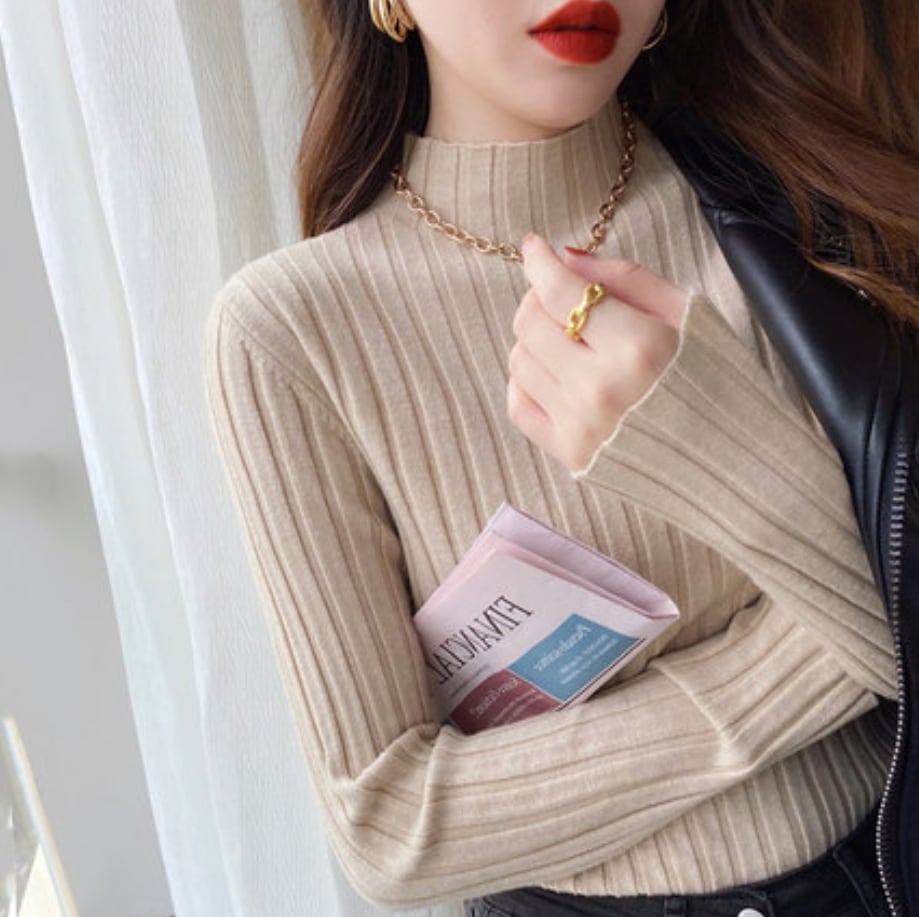 ニットハーフ 半タートルネックセーター ネックベースの長袖ブラウス春秋冬 ニット