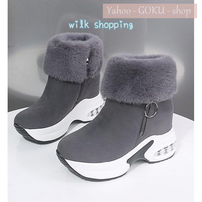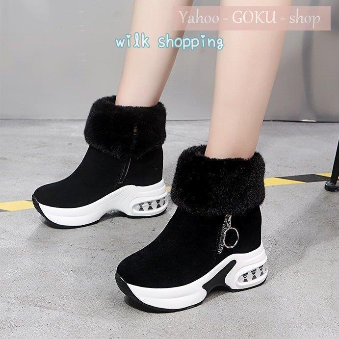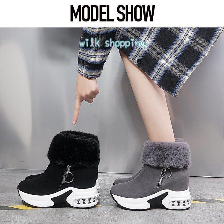 身長8cmアップ ムートンブーツ ボア 裏起毛 ファー レディース スノーブーツ ショートブーツ 厚底 インヒール ファッション 美脚 脚長 お洒落 背が高くなる