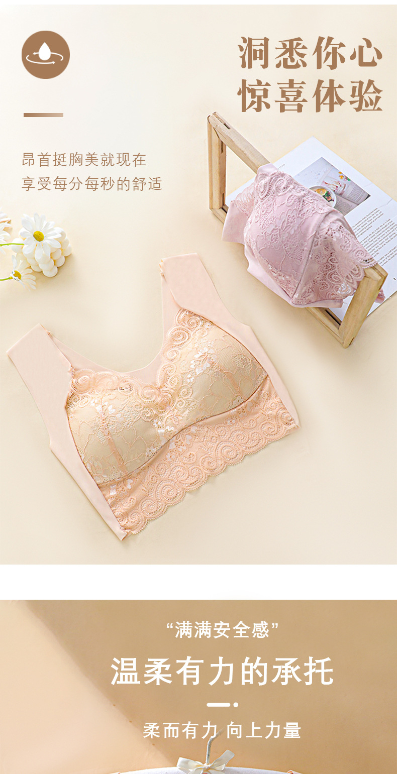 プッシュアップ大きいサイズ ワイヤーなしバックレース 薄型固定ワンカップシームレスおやすみブラベスト ブラジャー
