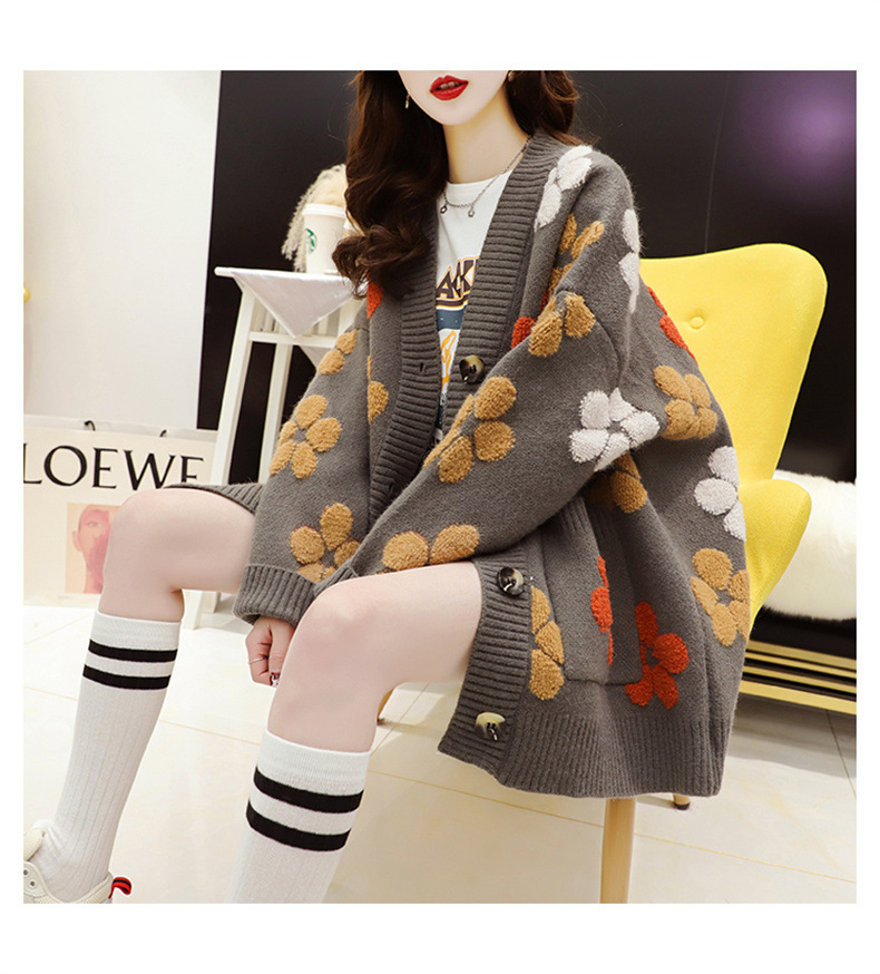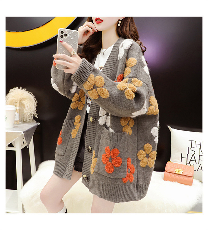 花ニットカーディガン 厚手 レディース 春秋 ゆったり ボリューム袖 アウター トップス ニット ロングカーディガン 羽織 前開き もこもこ 暖か 厚手 ふわふわ キレイめ ゆったり カジュアル