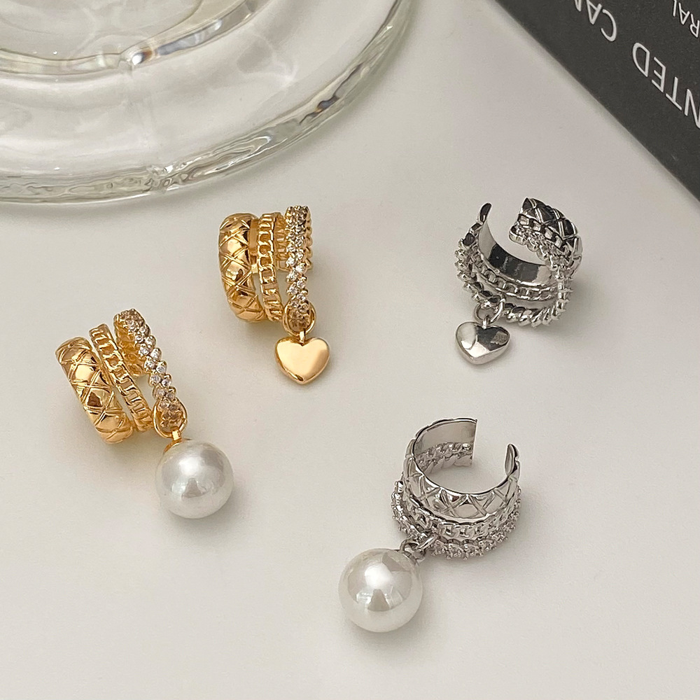 冬のピアス ラブパールメタルホールレスイヤークリップパーソナルピアス イヤリング