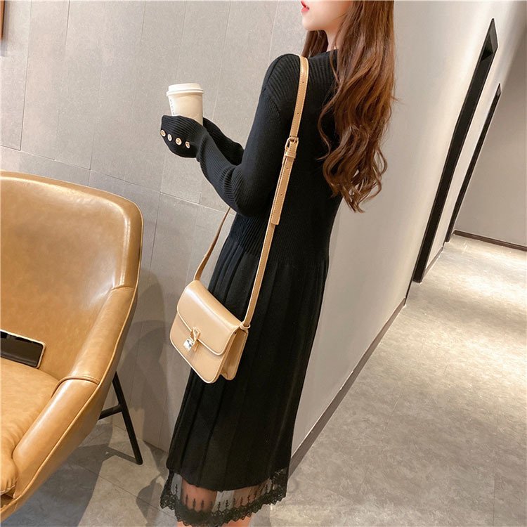ニットワンピ ニットワンピース レディース 黒 秋冬 体型カバー 長袖 マキシ丈 ニット ロング丈 ゆったり 無地 韓国風 ゆったり 可愛い 30代 40代 50代