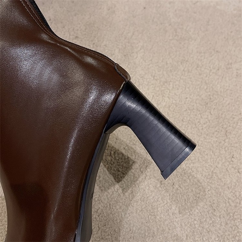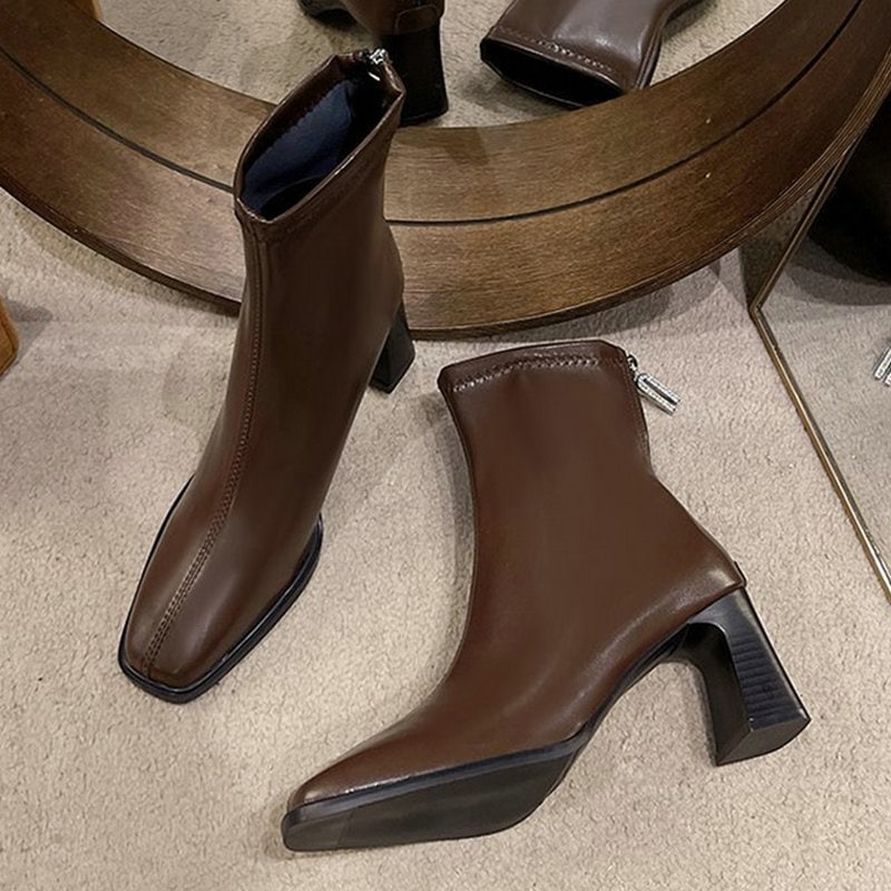 お気に入り商品 英国スタイル シンプル レトロ 太ヒール ブーツ ショートブーツ ファッション ファスナー式 ショートブーツ ヒール 毎日履きたい