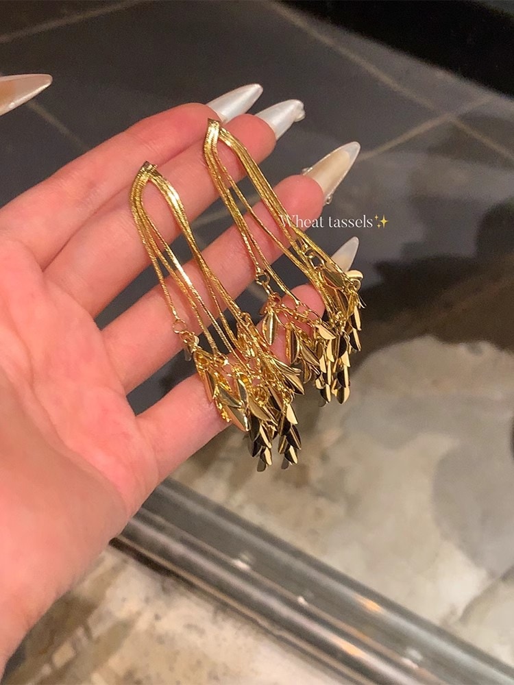 ピアス ロングタッセル小麦ピアス気質イヤリングイヤリング ピアス