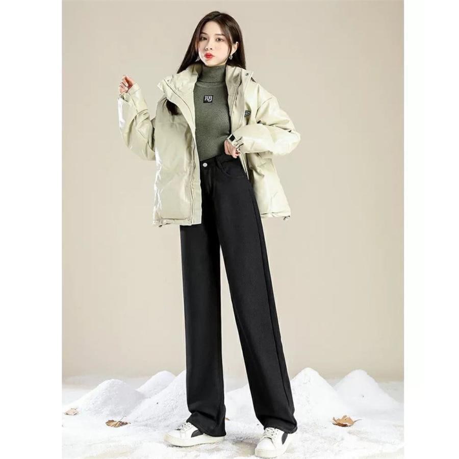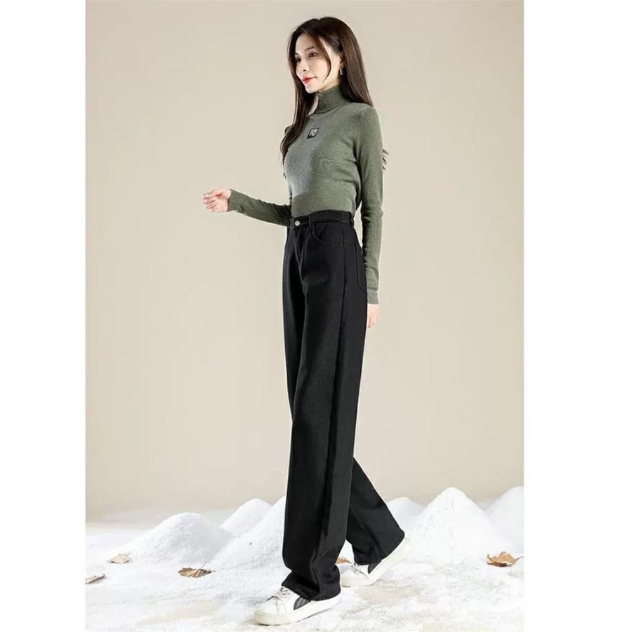 デニムパンツ レディース 裏起毛 ワイドパンツ ジーンズ カジュアル 防風 防寒 あったか 裏ボア 無地 着痩せ 着回し ゆったり シンプル 落ち感