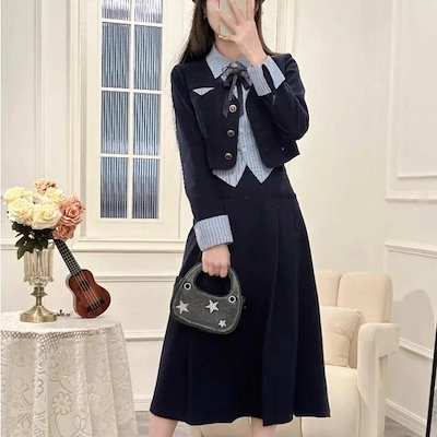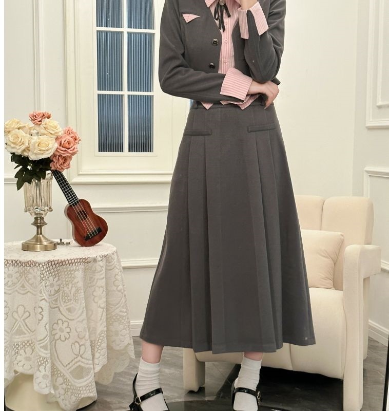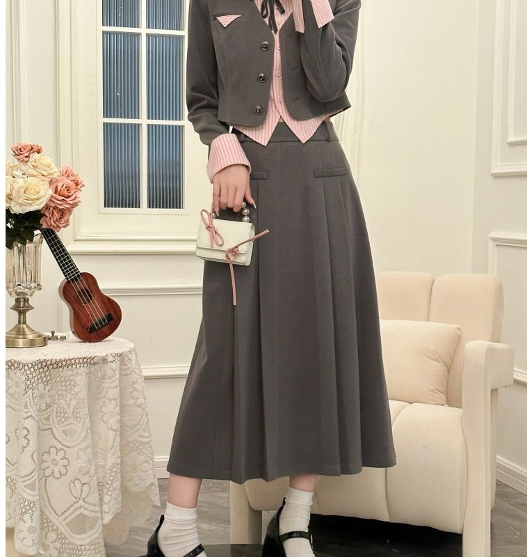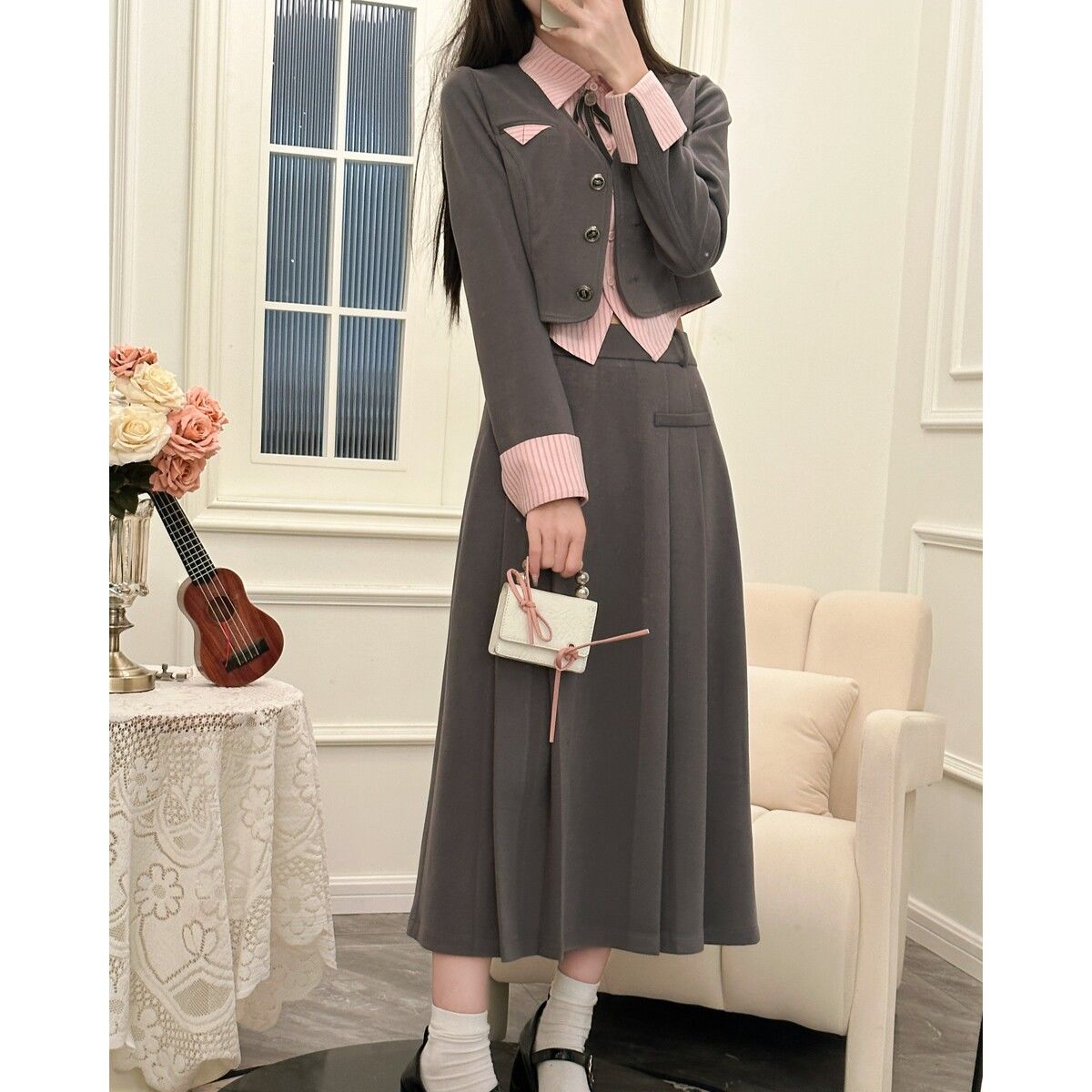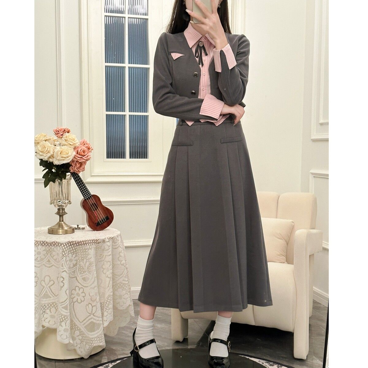 アッシュピンクのロングスカートアメリカンレトロ感学院風ウエスト丸め痩せJK制服 レディース 涼しく楽ちんセット2024 ファッションアップ 新作 韓国ファッション セットアップ