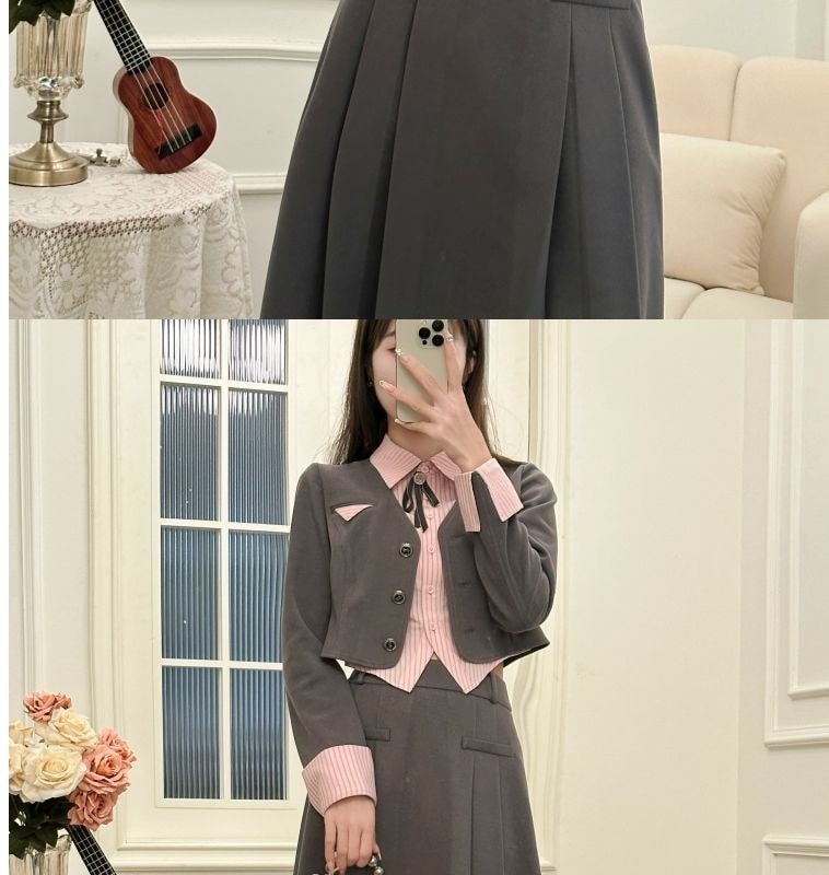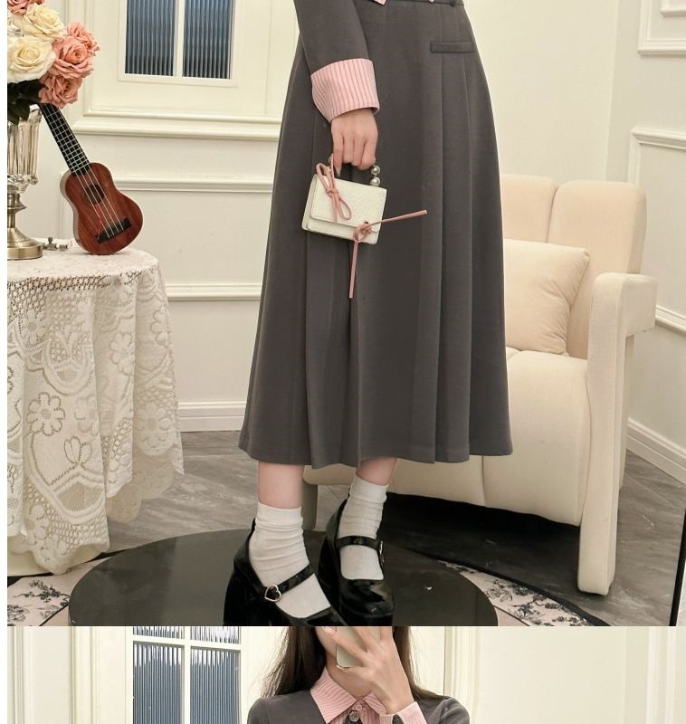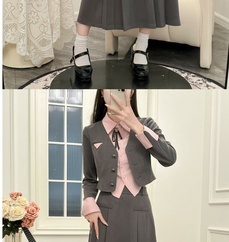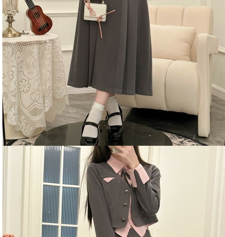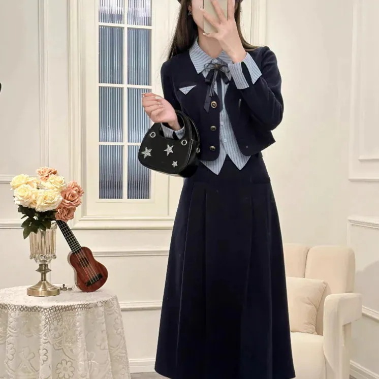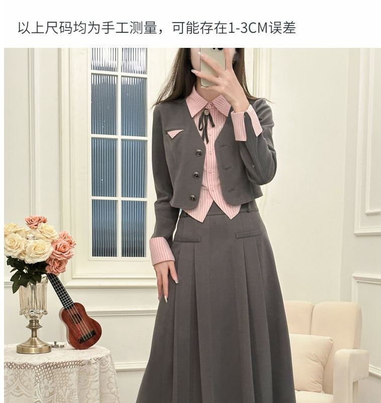 アッシュピンクのロングスカートアメリカンレトロ感学院風ウエスト丸め痩せJK制服 レディース 涼しく楽ちんセット2024 ファッションアップ 新作 韓国ファッション セットアップ
