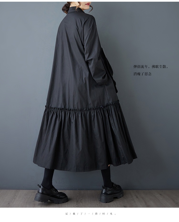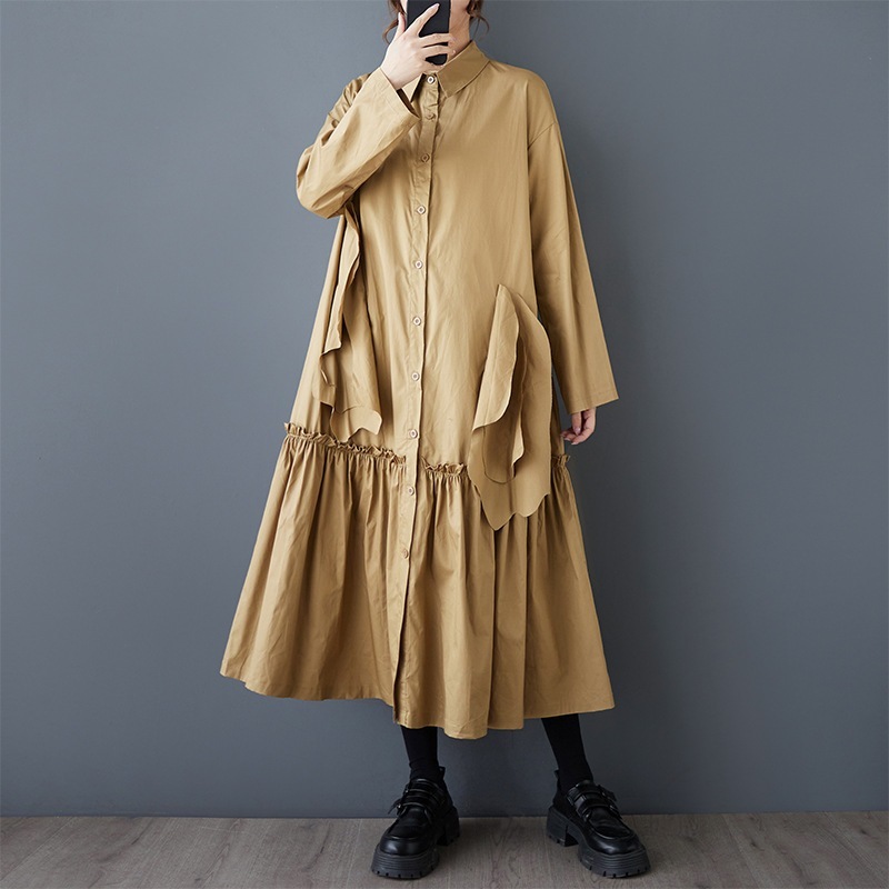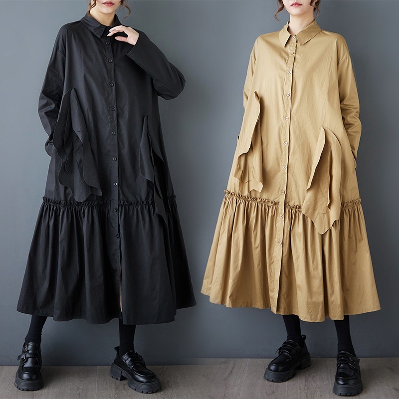 新作春シャツワンピース 長袖ワンピース ロングワンピース カジュアル 通勤 文芸 ゆとりがある 通勤 長袖 ブラック アンズ色 スタンドカラー シャツワンピースJGX02