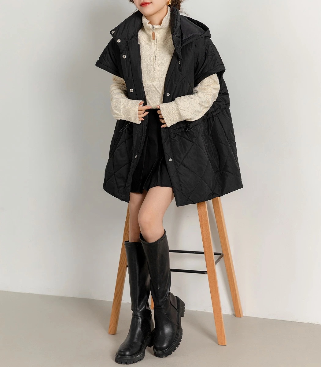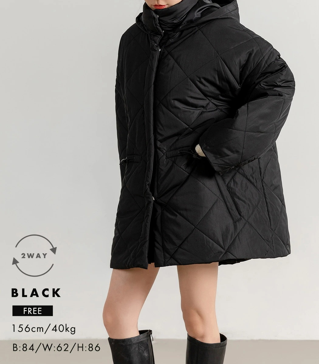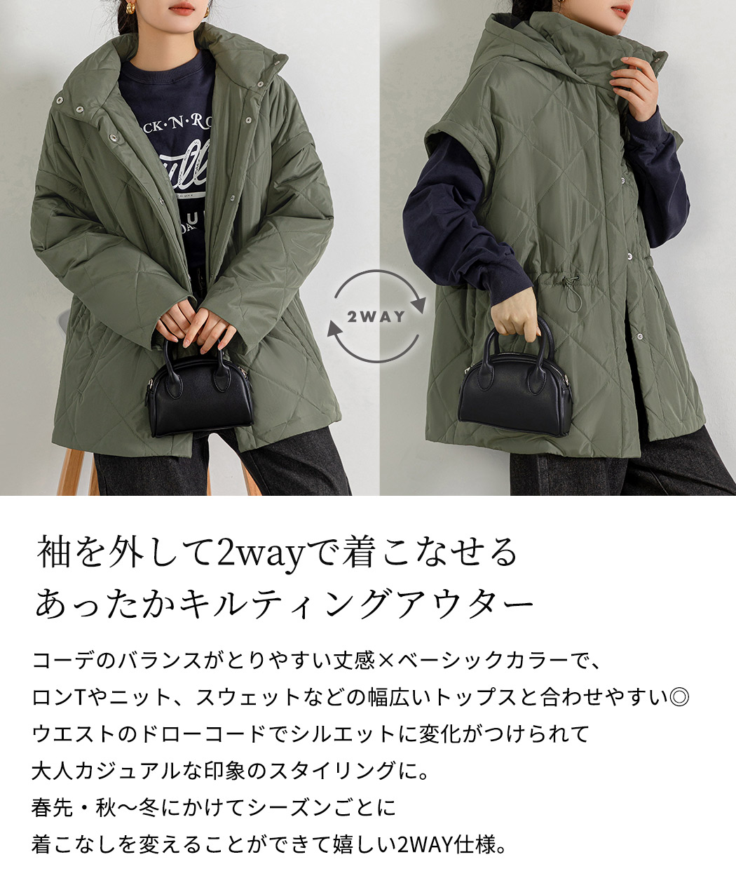 ,,キルティング ジャケット 2way 長袖 袖取り外し 半袖 ショートコート 上着 羽織り アウター レディース 防寒 暖かい ハイネック フード ポケット ドロップショ