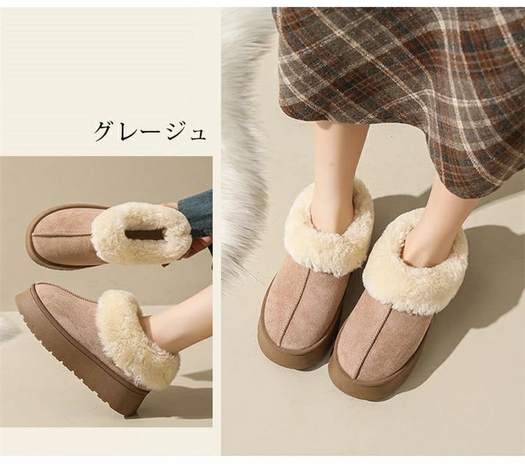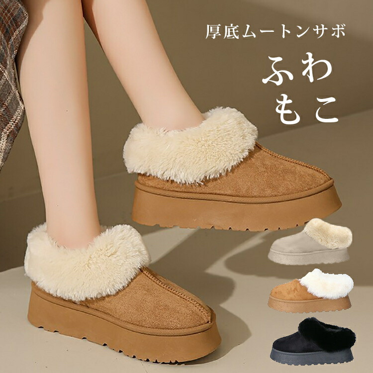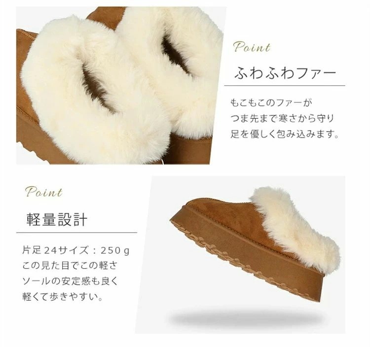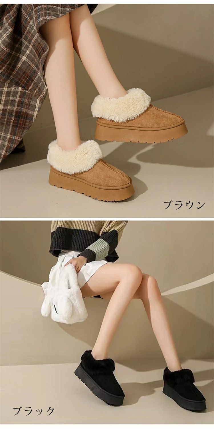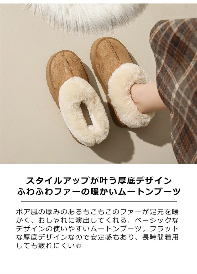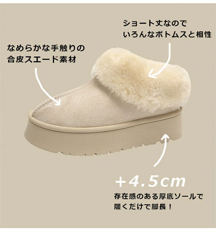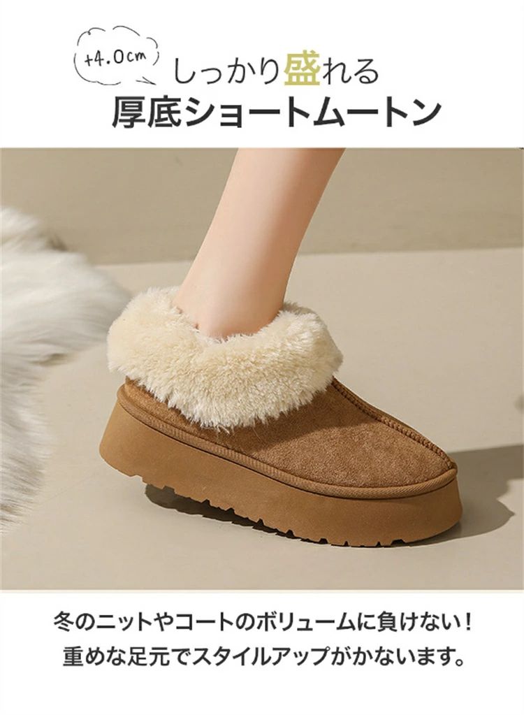ムートンブーツ 厚底 スリッポン レディース 4.0センチヒール ブーツ ショート レディース 厚底ムートン 厚底ブーツ 旅行 レジャー 疲れない 軽量 ファー ボア もこもこ あたたかい おしゃ