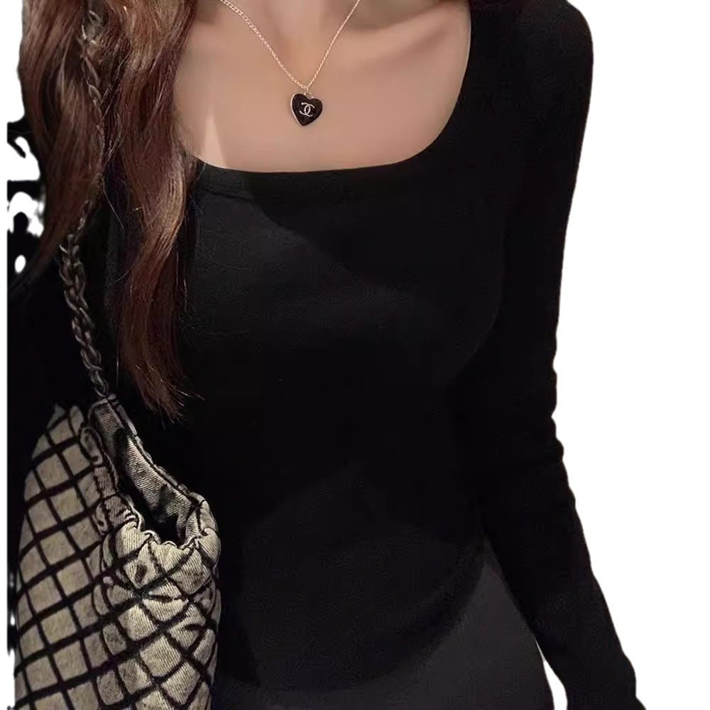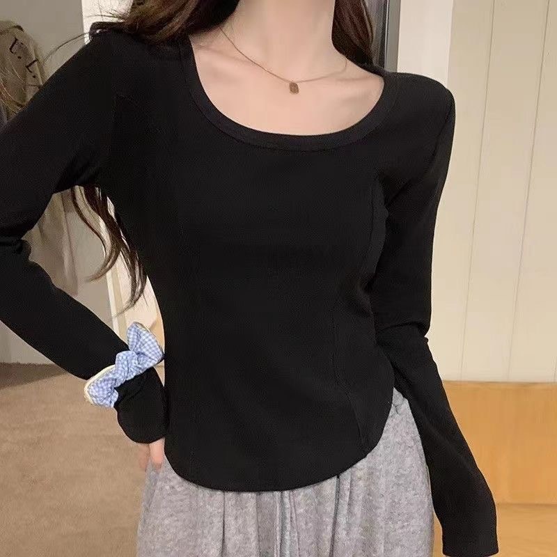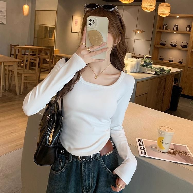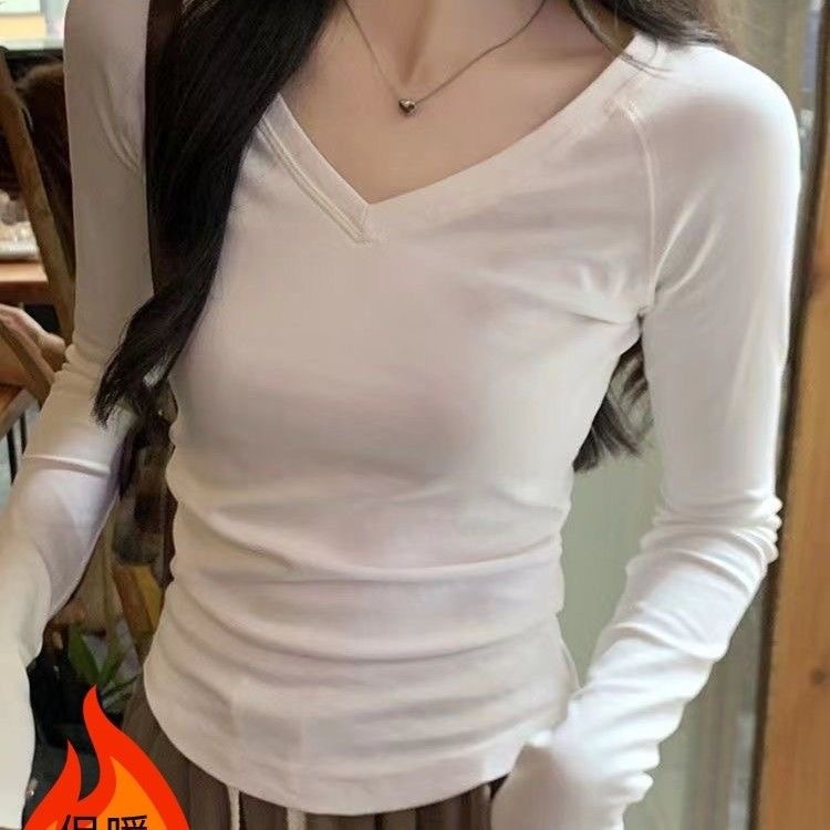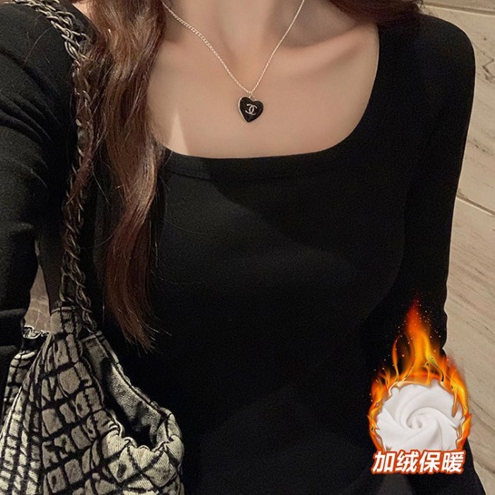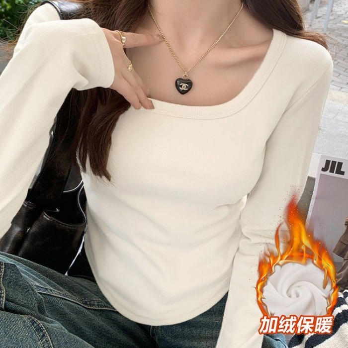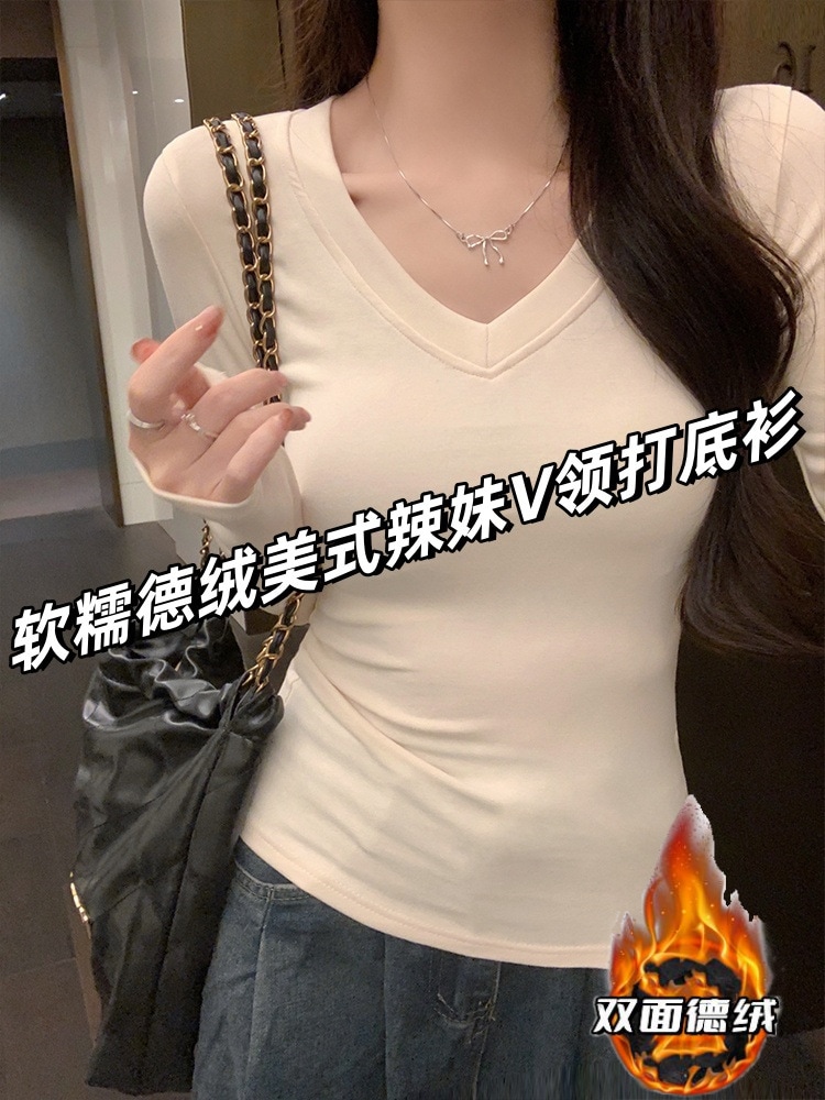 裹起毛 アメリカンレトロドイツンベルベット長袖ボトムシャツ2025秋冬パッド入りスパイスガールズスリム無地インサイドアウトデザイントップス ニット