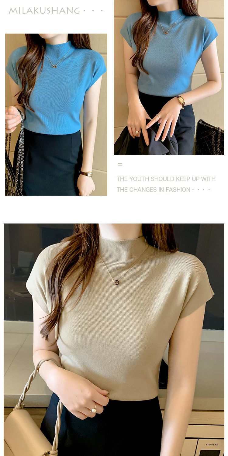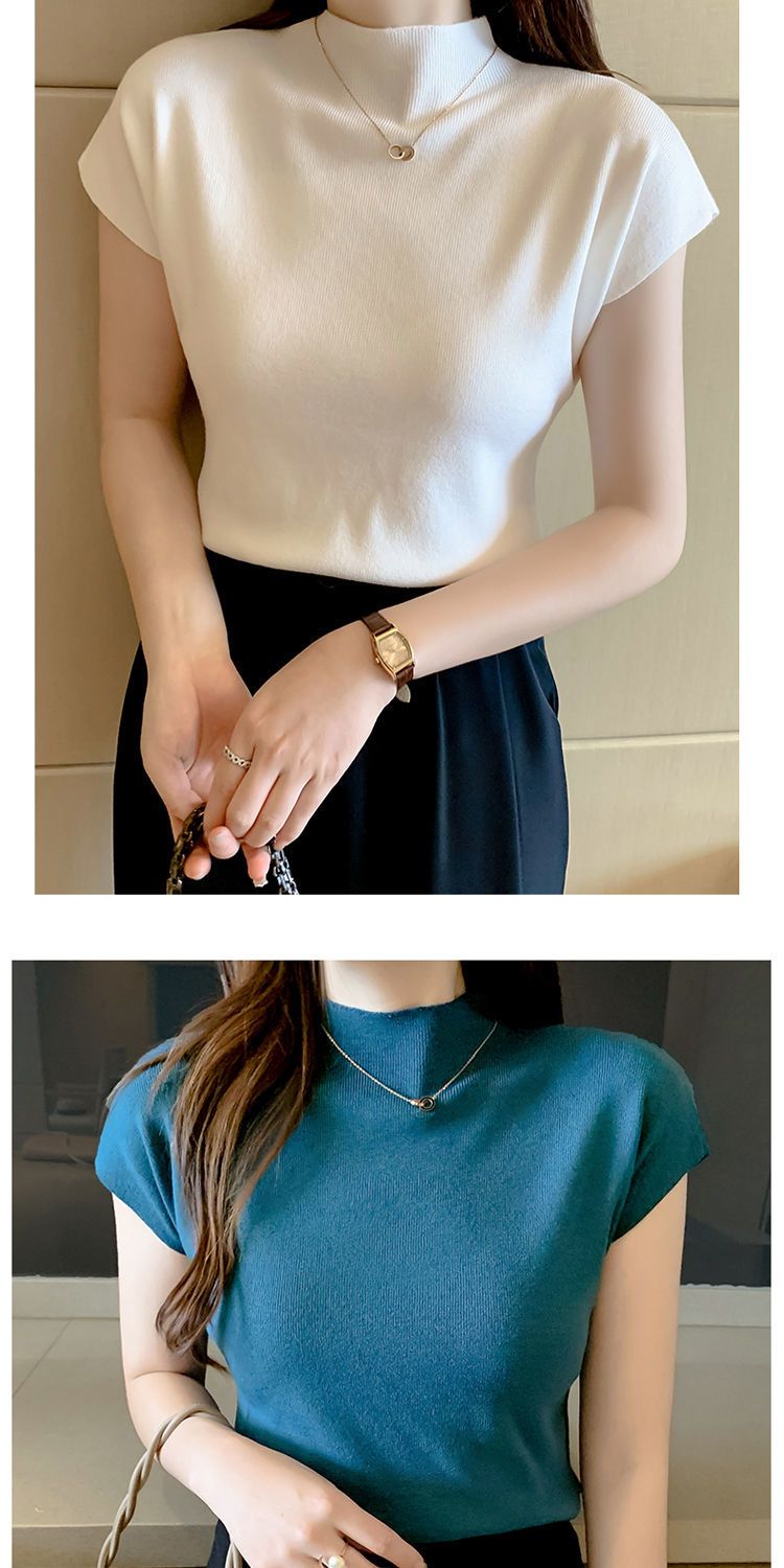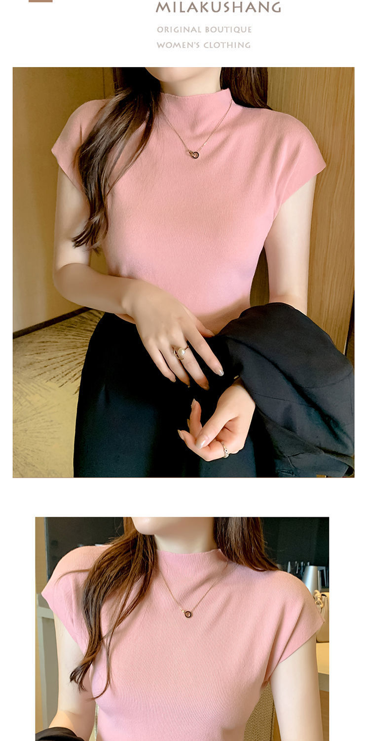 新作 おしゃれ ノースリーブ アンダーウェア トップス 半袖 インナー ハイネック ノースリーブ 大きいサイズ tシャツ 半袖 レディース 薄手 接触冷感 ノースリーブ ロンt Tシャツカットソー 2