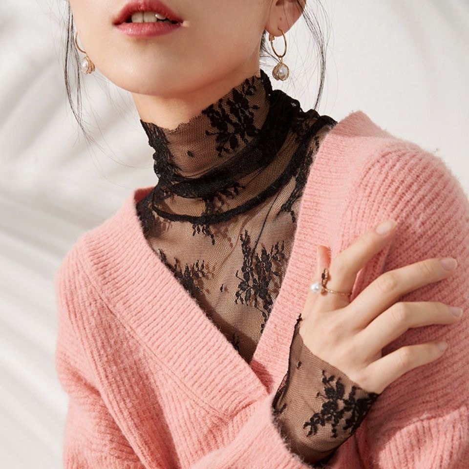 シアーシャツ レース ブラウス 白 長袖 uvカット 結婚式 二次会 オフィスカジュアル 春 総レース フォーマル オケージョン シースルー シャツ ハイネック