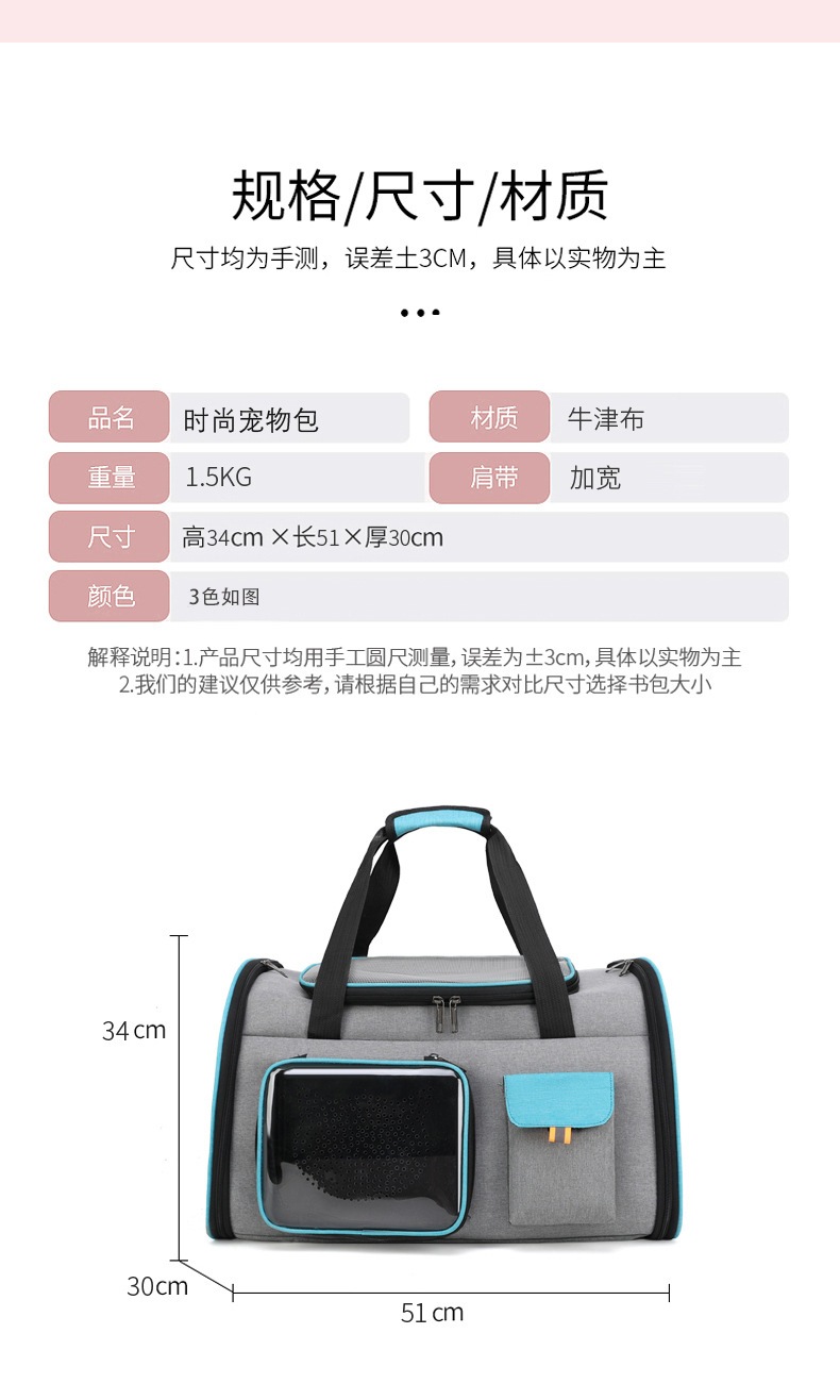 3色新しい外出散歩する旅行する用大空間通気ペット用ショルダーバッグ猫犬のハンドバッグ小型犬テディ貴賓犬子犬ガス透過性かわいい大容量携帯型ペットバッグ51*34*30MKSM64