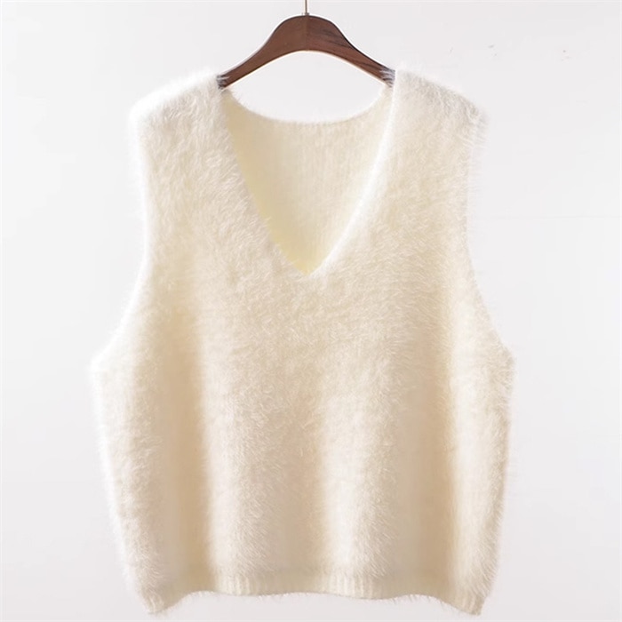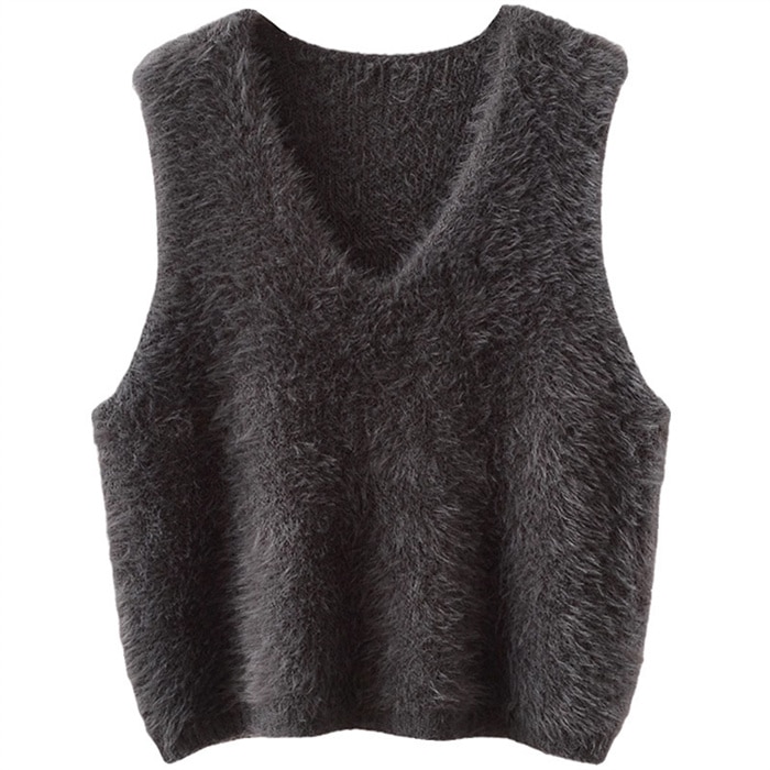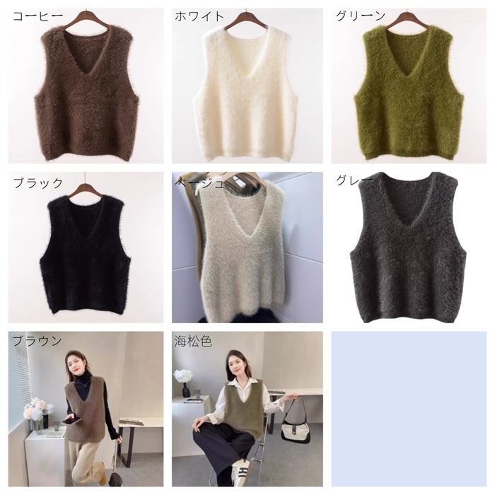 ファーベスト vネックベスト レディース 秋 冬 プルオーバー ベスト トップス ふわふわ ショート丈 ノースリーブ 無地 シンプル レイヤード 重ね着 もこもこ 大きいサイズ カジュアル 大人可愛い