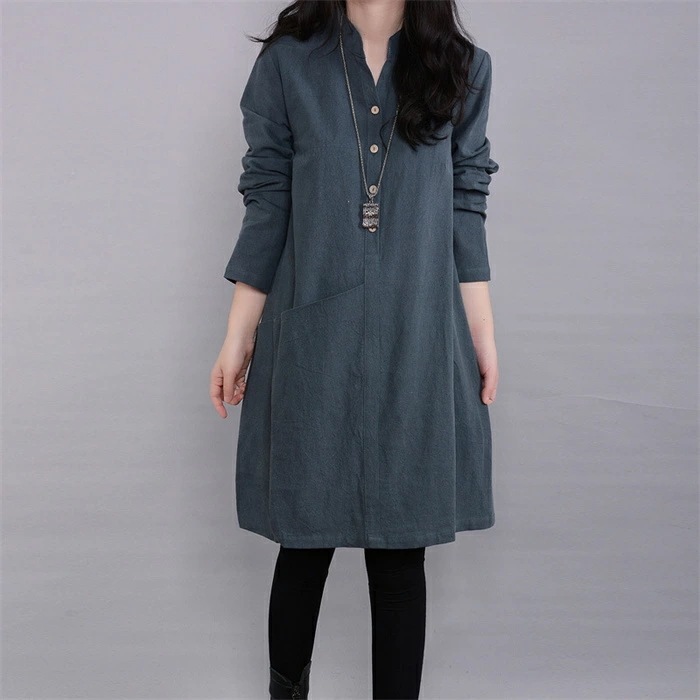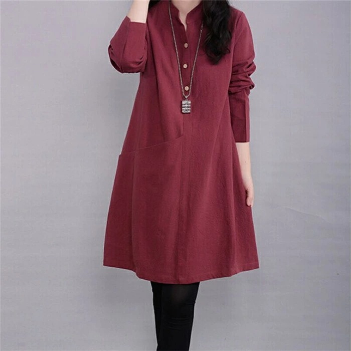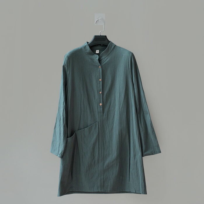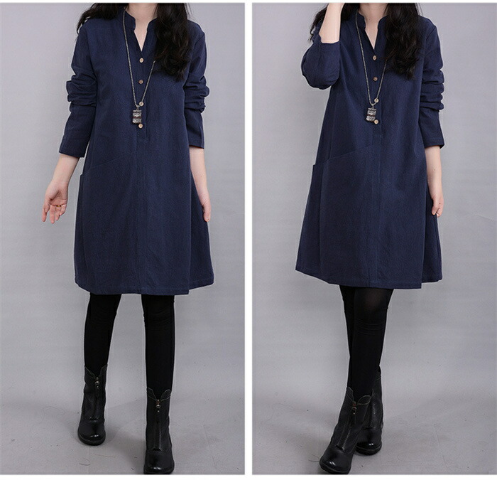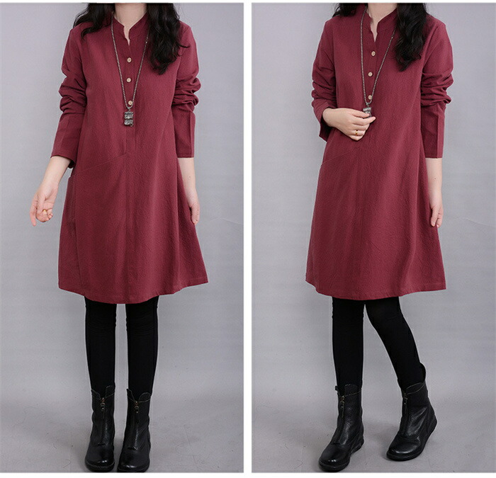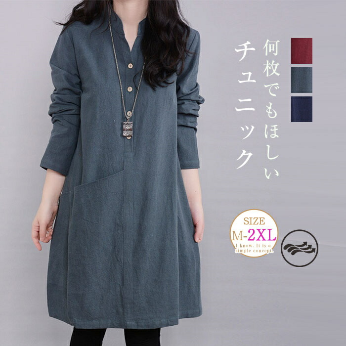 チュニックブラウス ロングシャツ レディース チュニックワンピース プルオーバー シャツ 長袖 スタンダードカラー 綿麻風 無地 トップス コットン リネン混 森ガール キレイめ 大きいサイズ 体型