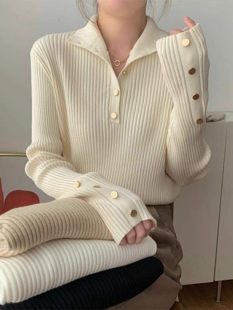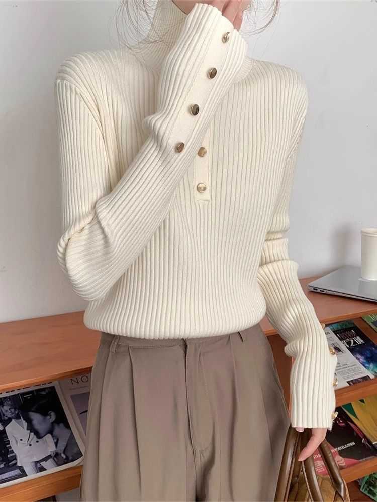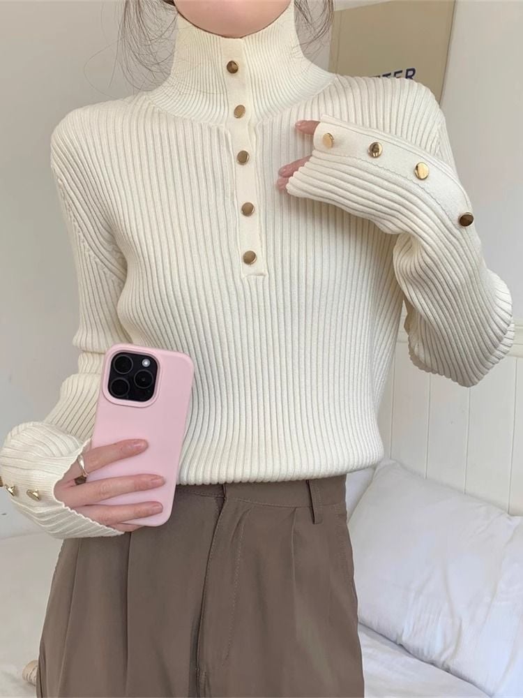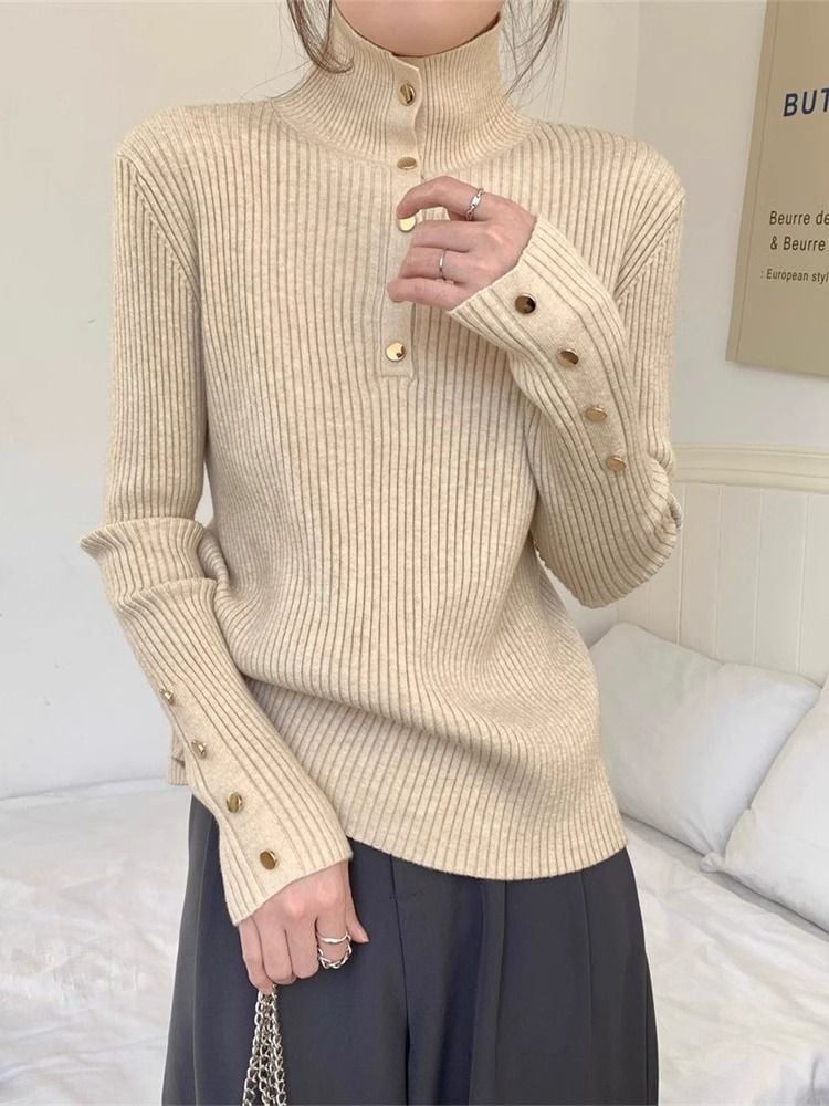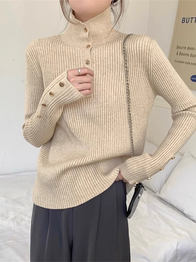 韓国ファッション 人気なリブニット ニットセーター トップス ニット インナー ベーシックニット 丸ネック ゆったりスウェットタートルネック リブニット