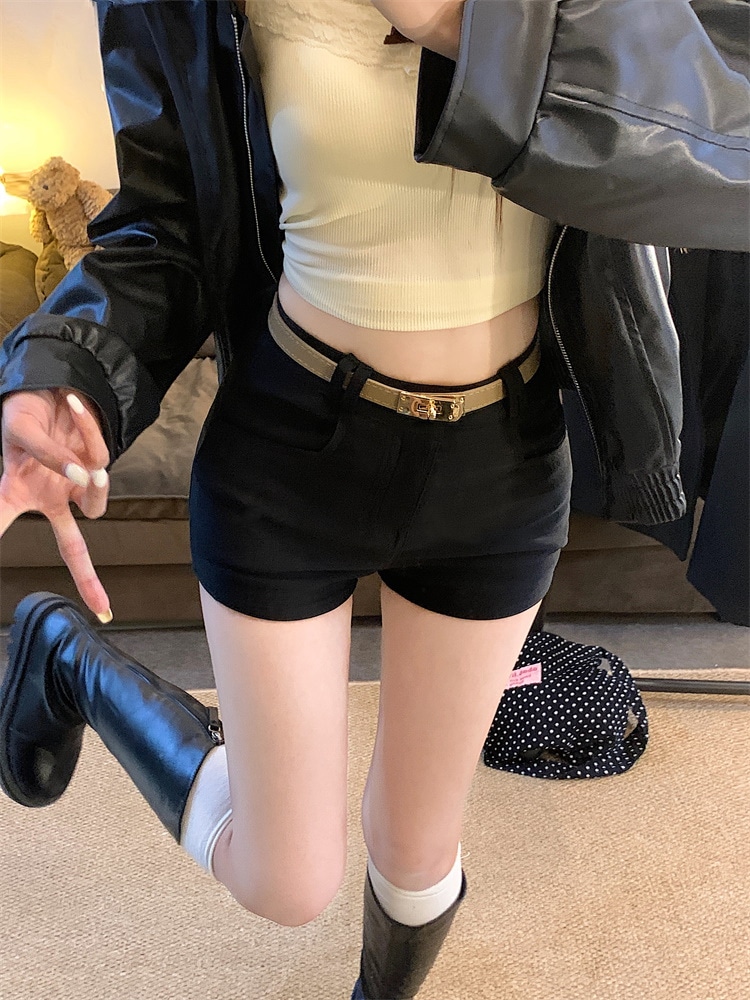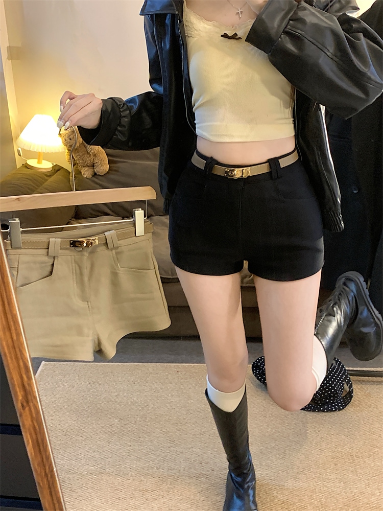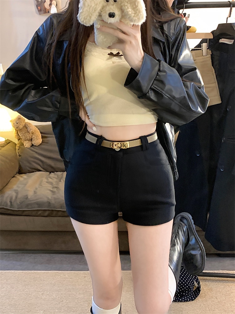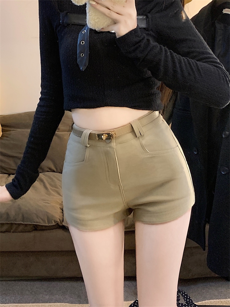 ショートパンツ 防寒パンツ Aライン ショート丈ストレートハイウエストショートパンツゆったり 脚長 美脚細見え 韓国ファッションパンツ レディース