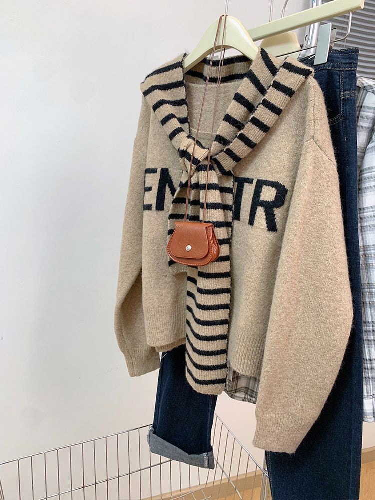 韓国ファッション 人気なリブニット ニットセーター トップス ニット インナー ベーシックニット 丸ネック ゆったりスウェット丸ネックリブニット