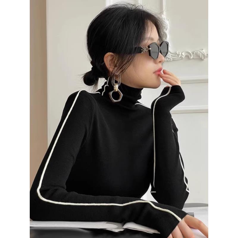 韓国ファッション 人気なリブニット ニットセーター トップス ニット インナー ベーシックニット 丸ネック ゆったりスウェットタートルネックリブニット