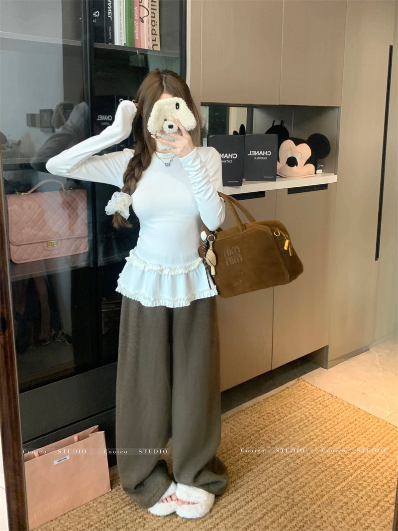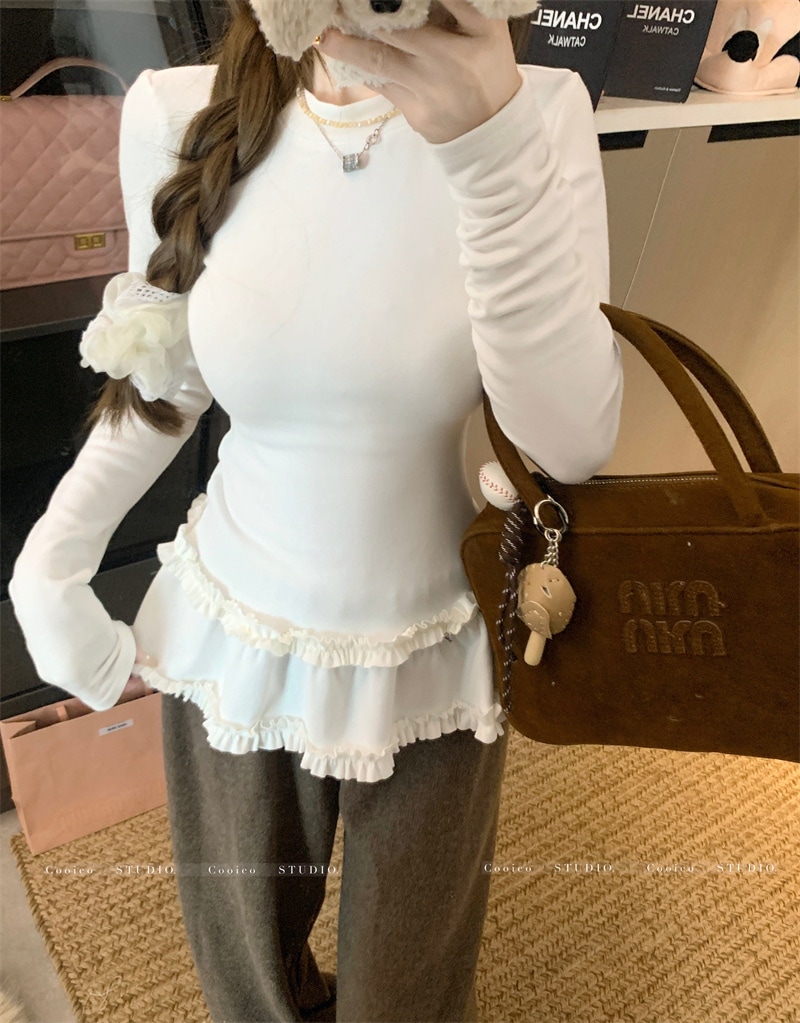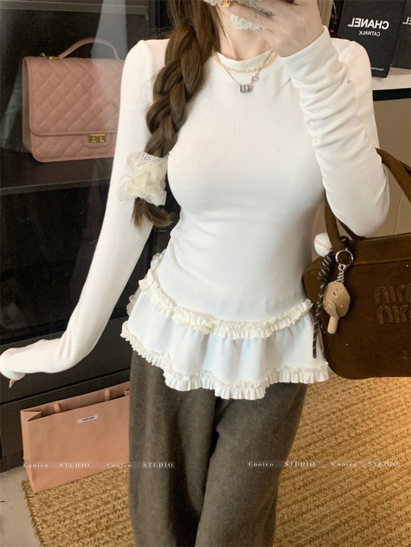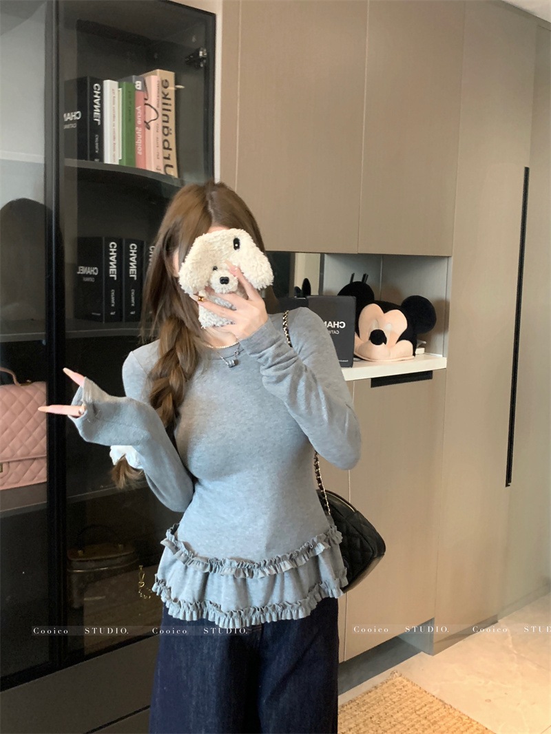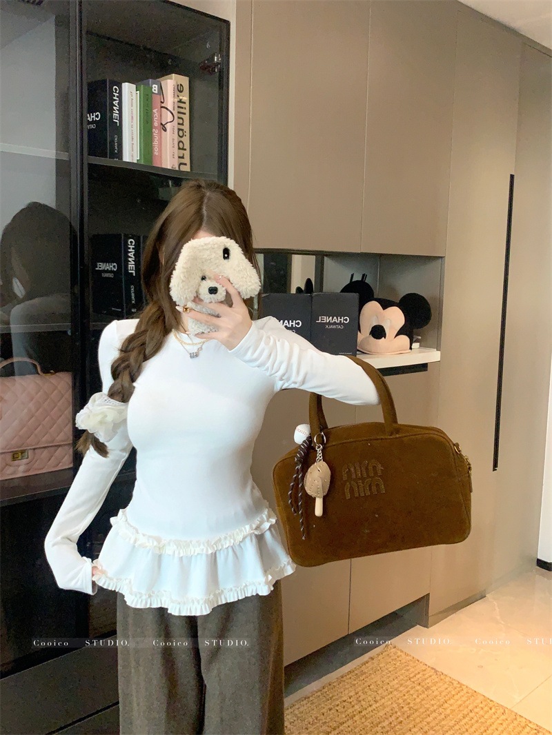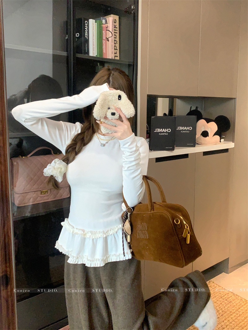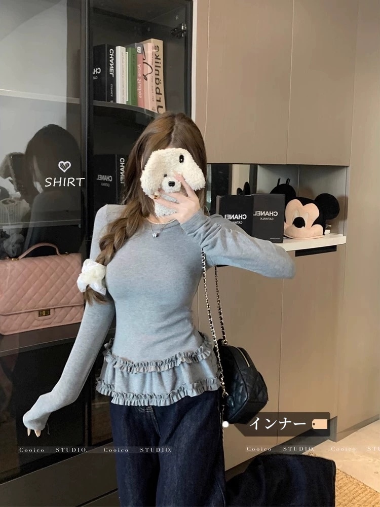 韓国ファッション 2025新作 インナートップス Tシャツ 長袖ブラウス スウェットおしゃれ かわいい 長袖tシャツ レディース 厚手 保温 トップス