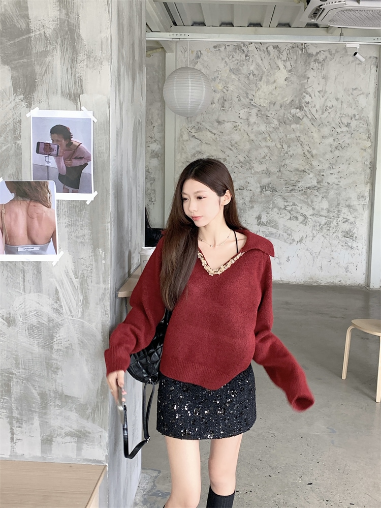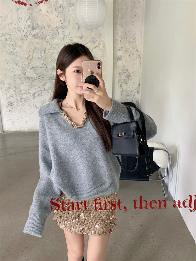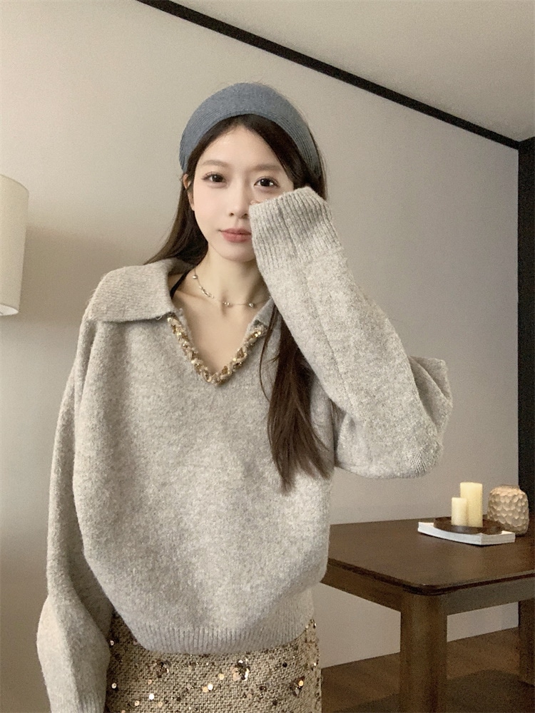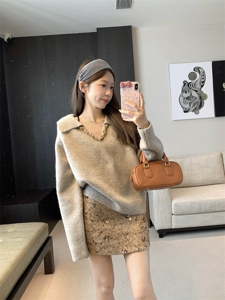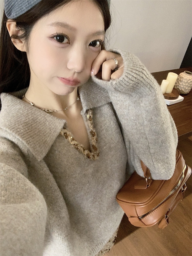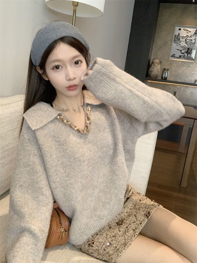 韓国ファッション 人気なリブニット カシミヤタッチ ニットセーター トップス ニット インナー ベーシックニット Vネックゆったりスウェット リブニット