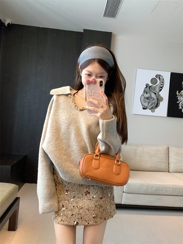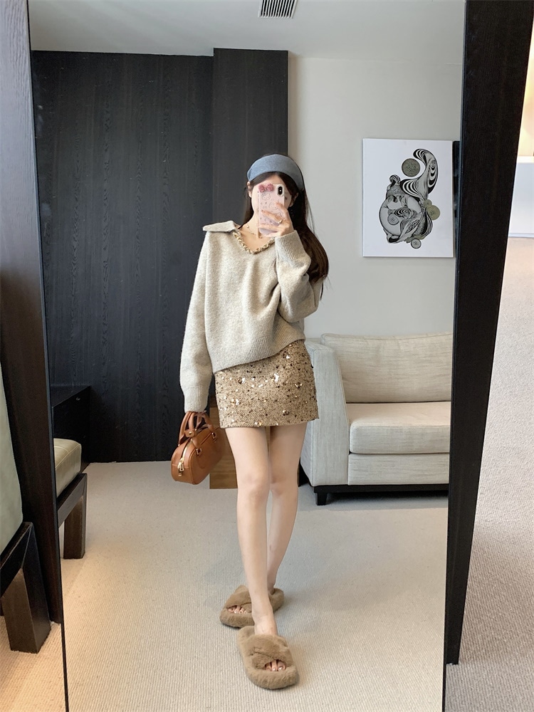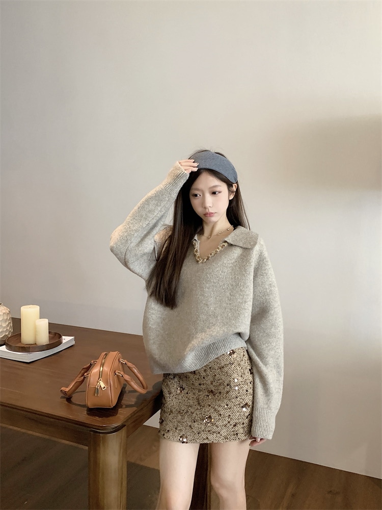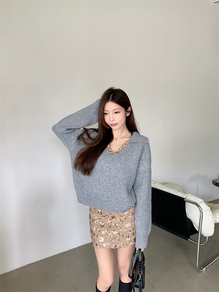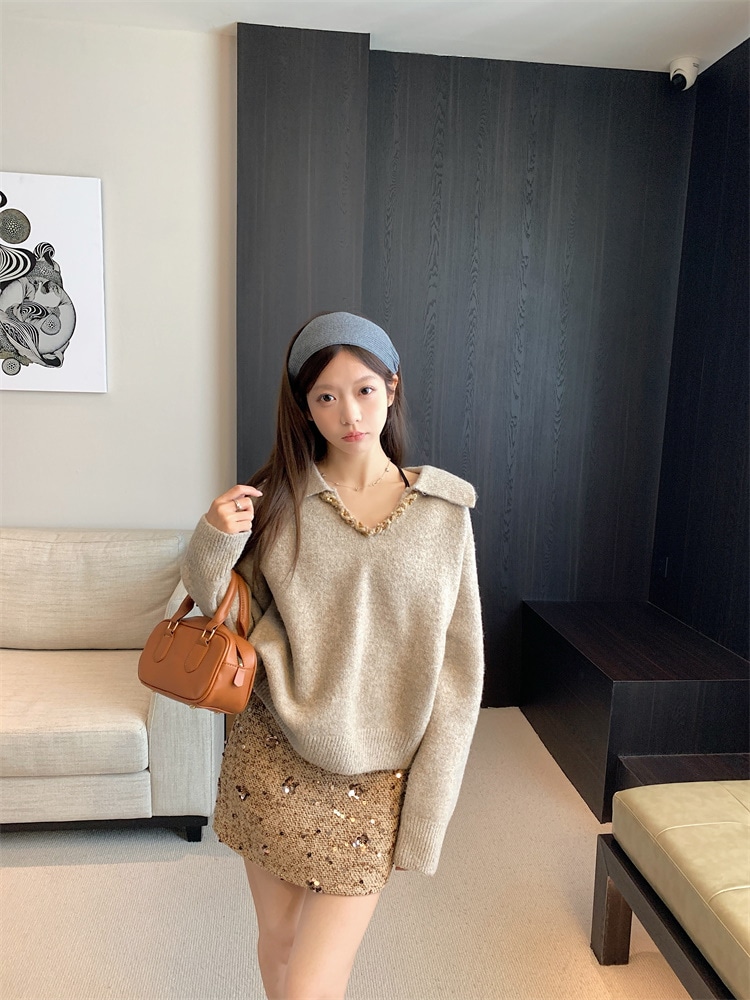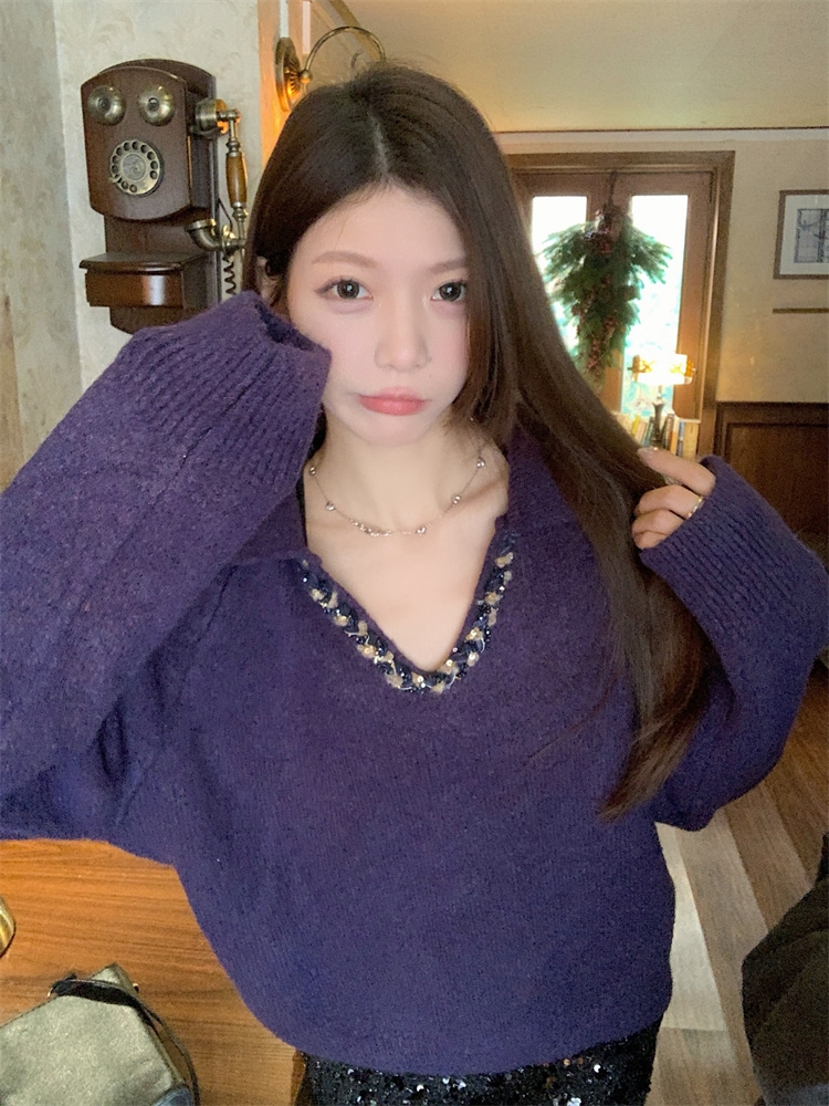韓国ファッション 人気なリブニット カシミヤタッチ ニットセーター トップス ニット インナー ベーシックニット Vネックゆったりスウェット リブニット