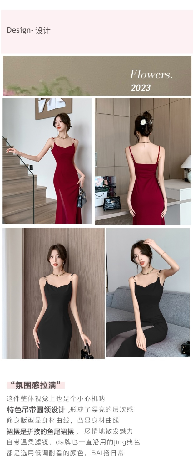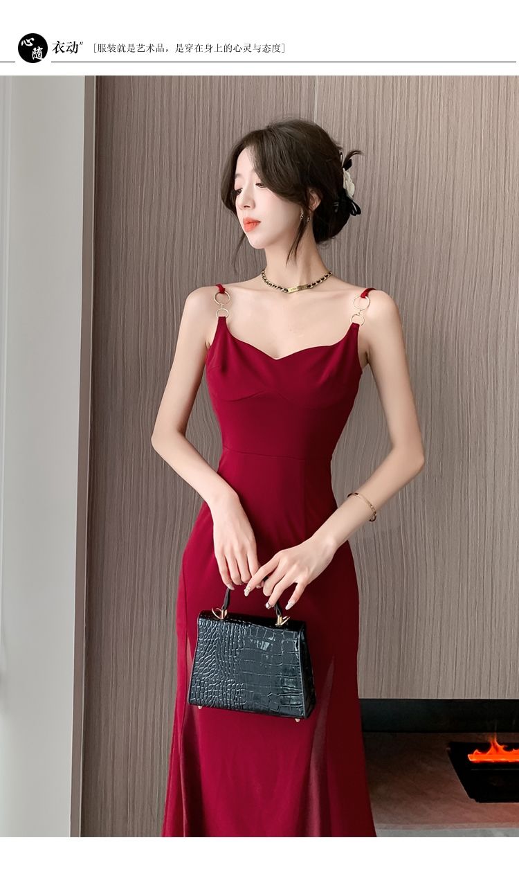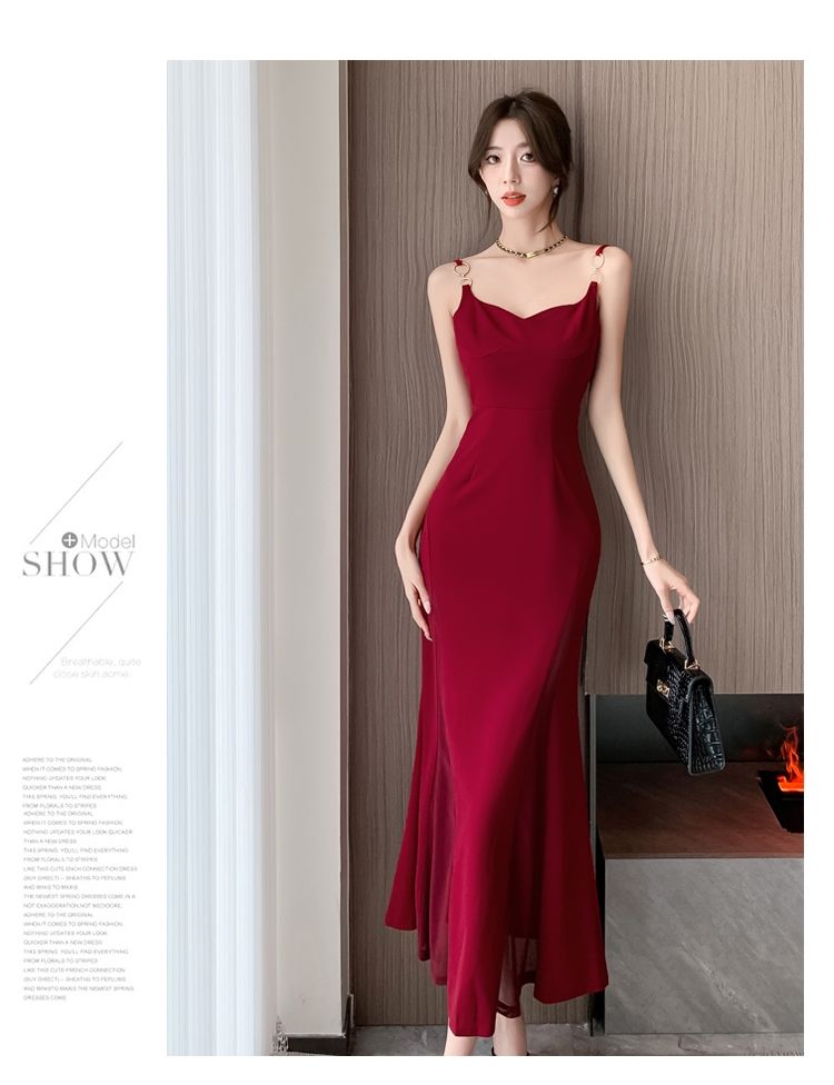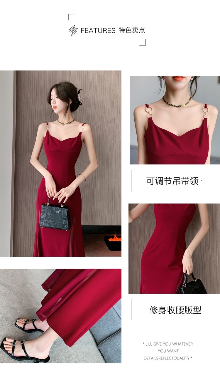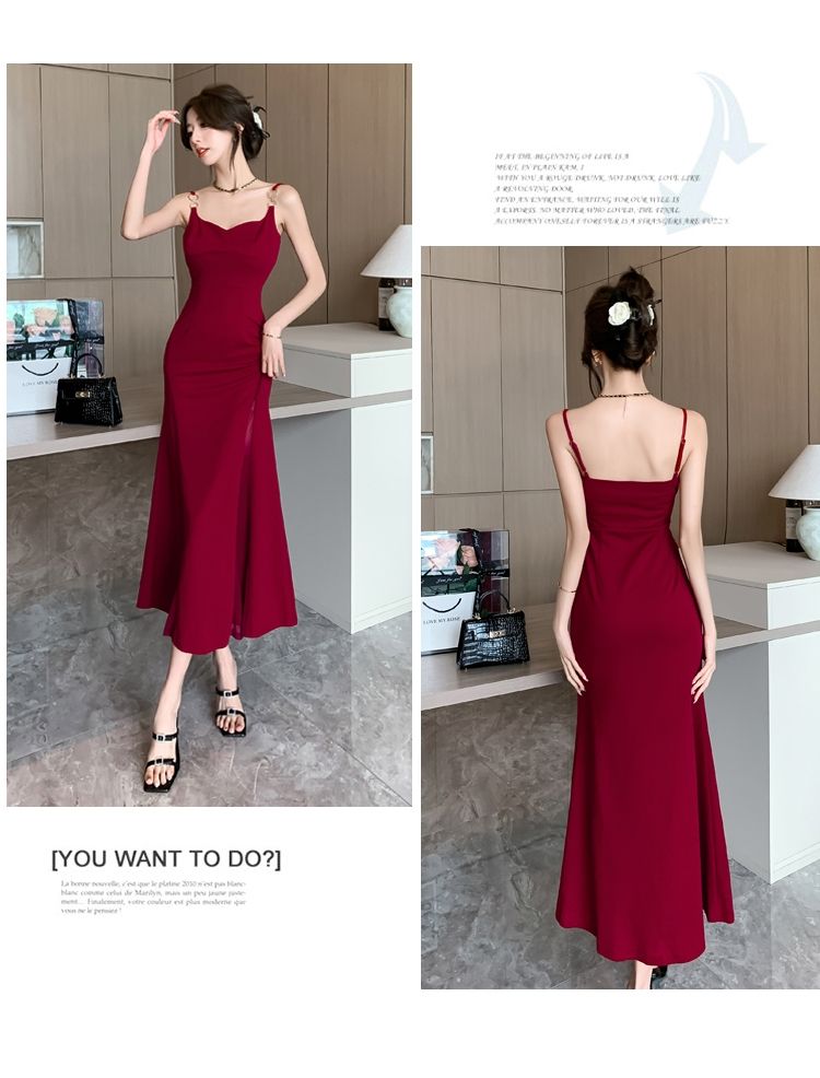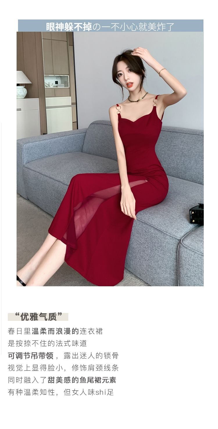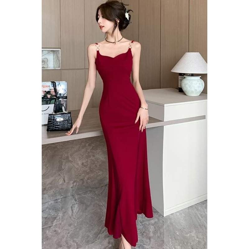 シーズン ティーブレイク レッド サスペンダードレス フェミニニティ シニア セクシー ロイヤルシスター パッケージ ヒップ ロングスカート