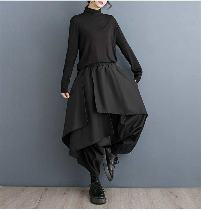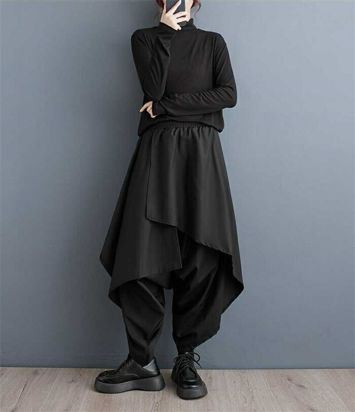 キュロットスカート サルエルパンツ パンツ レディース イージーパンツ サルエル ワイドパンツ ワイド 無地 九分丈 秋冬 ボトムス ズボン 美脚 ロング丈 おしゃれ 着やせ シンプル カジュアル リ