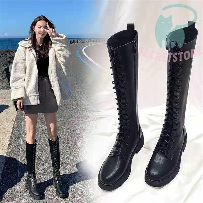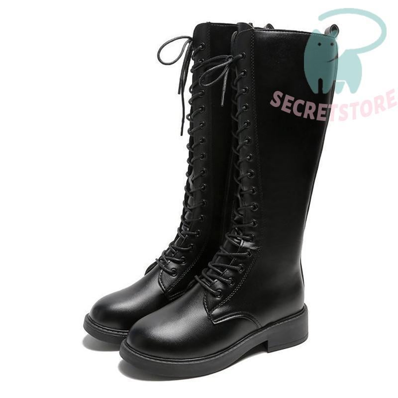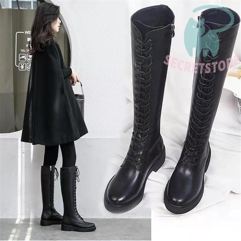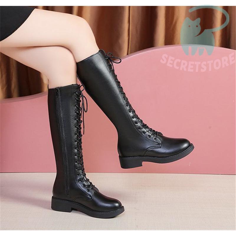 ロングブーツ レディース ロング丈 太ヒール スクエアトゥ トレンド シンプル レース編み上げ 裏起毛 おしゃれ 歩きやすい 履きやすい ファスナー付き