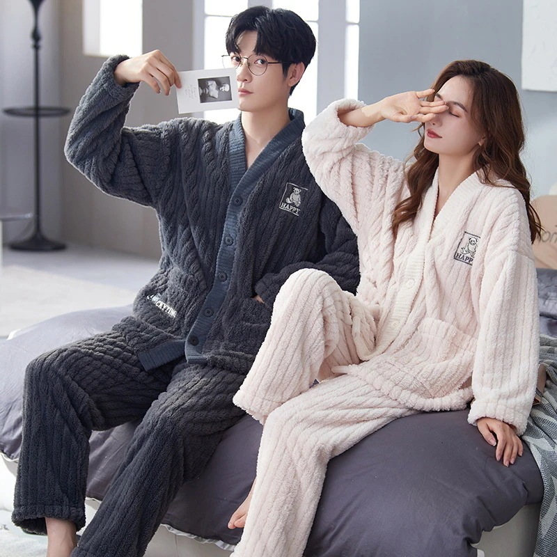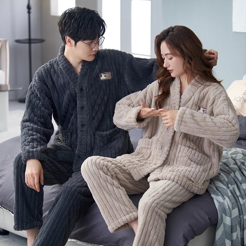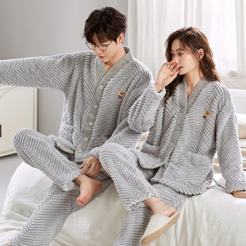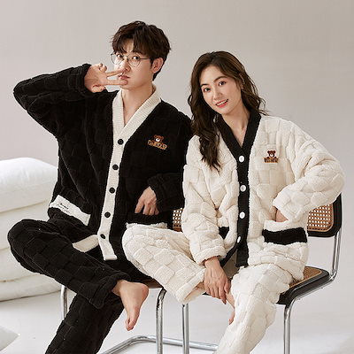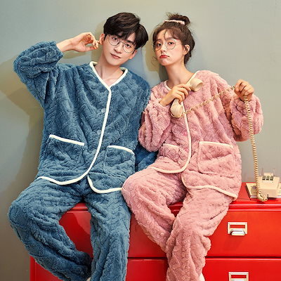 レディース ルームウェア 上下セット 冬 長袖 メンズ ルームウェア ペアパジャマ 前開き もこもこ 部屋着 フランネル パジャマ 結婚祝い プレゼント