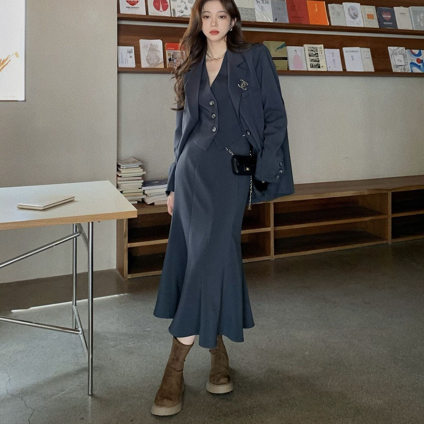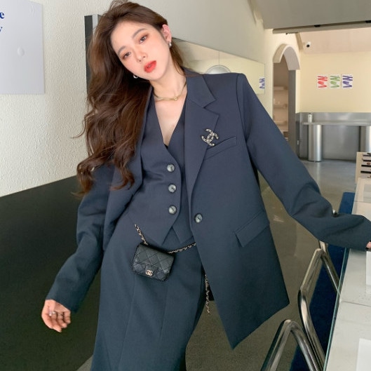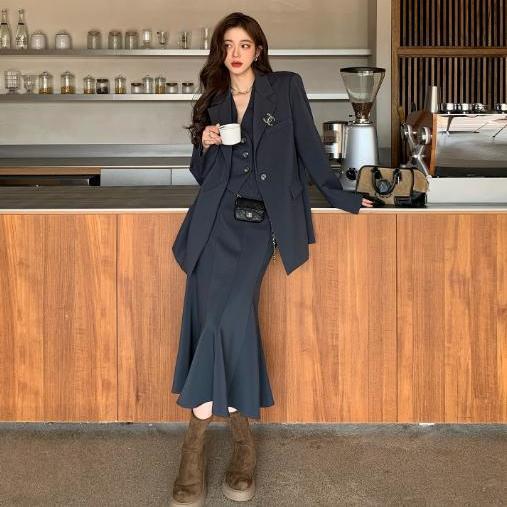 ツーピーススーツコートウエストコートビスチェスカート韓国レトロスーツシニア感覚ファッションカジュアルレディーススリーピーススーツ セットアップ
