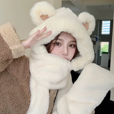 冬用の可愛いくまのモフモフ素材で保温性のスカーフです 耳あて イヤーマフラー