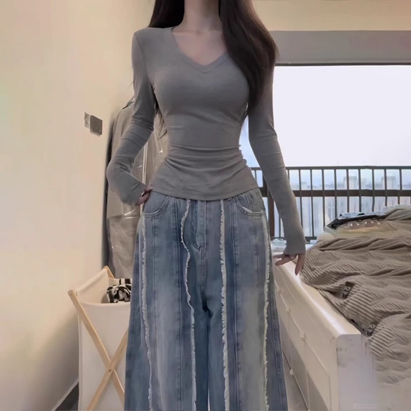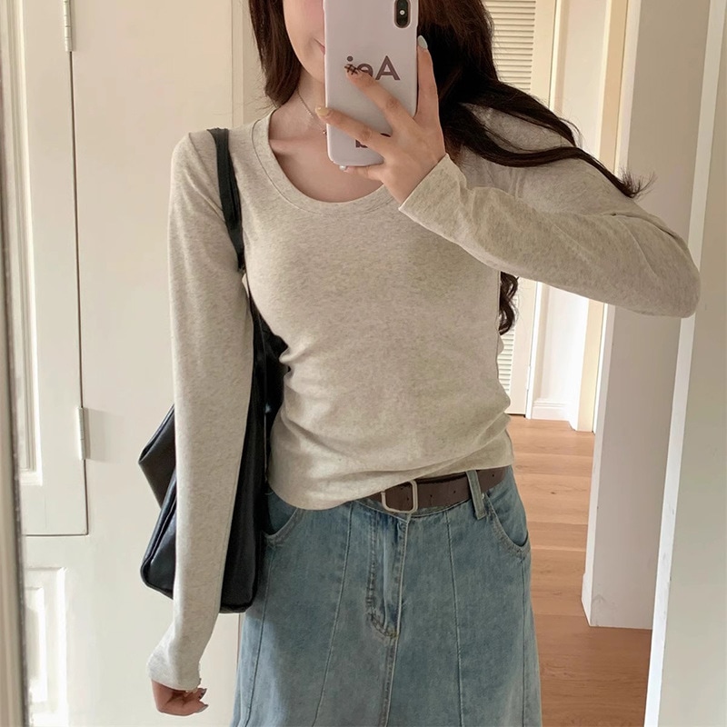 裹起毛 ラウンドネックソリッドカラー暖かいTシャツ秋と冬のパッド入りボトミングシャツピンチウエストポジショルダー長袖ブラウスボトムス服女性の下着