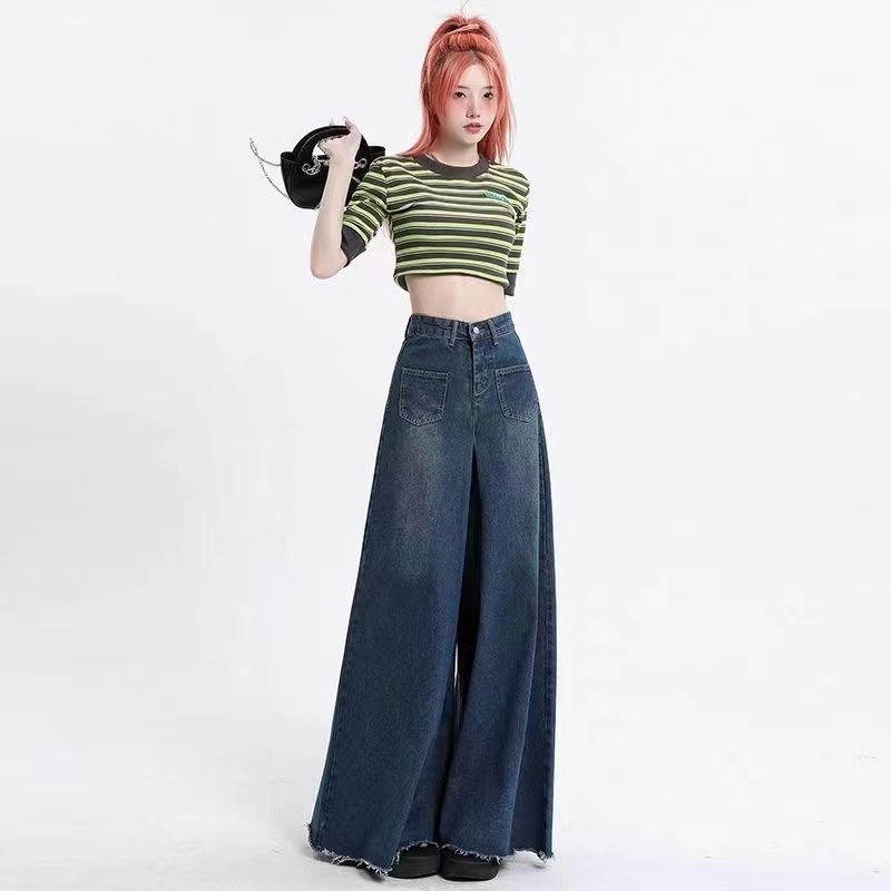 デニムパンツ2024新作 おしゃれ 流行り ハイウエスト ワイドパンツ ジーンズ レディース レトロ ゆったり ズボン スラックスパンツ デニム スキニーパンツひんや