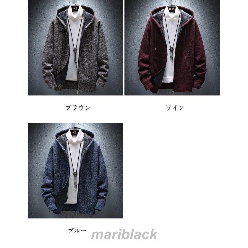 裏ボア メンズ ニット 厚手 ムートン フード付き 裏ボア パーカー 冬 ジャンパー 裏ボアパーカー ジャンパー ブルゾン