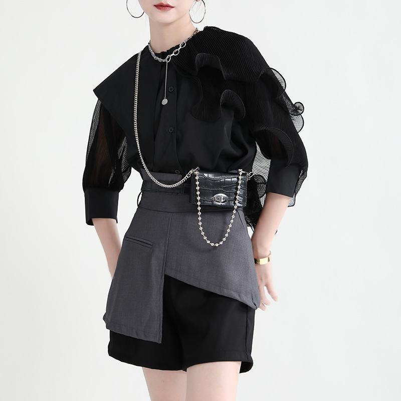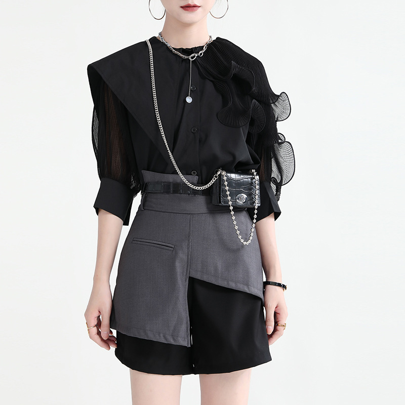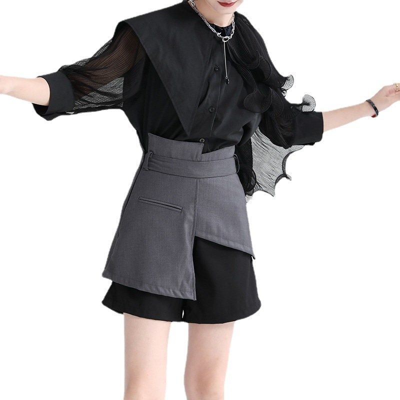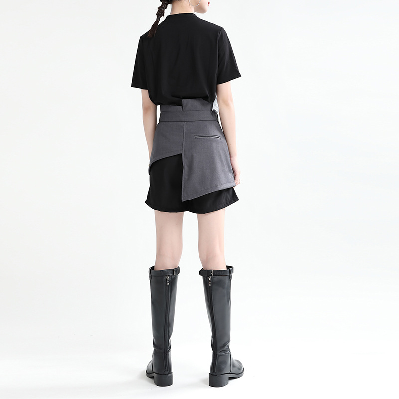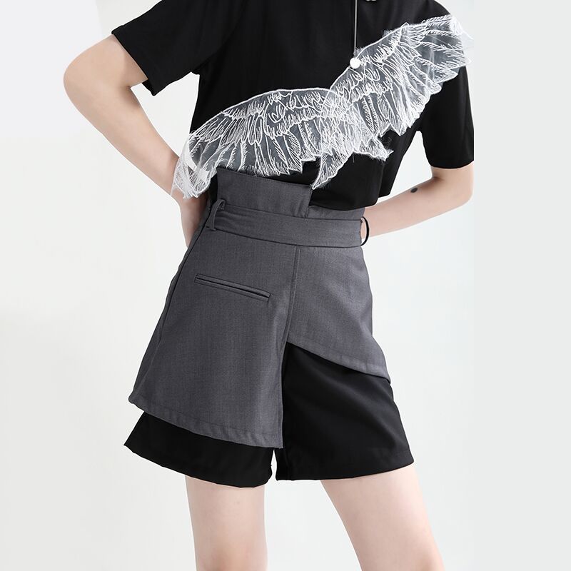 ショートパンツ ニセ2セット レイヤード スラックス スーツパンツ ショート ハーフパンツ