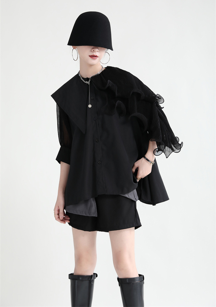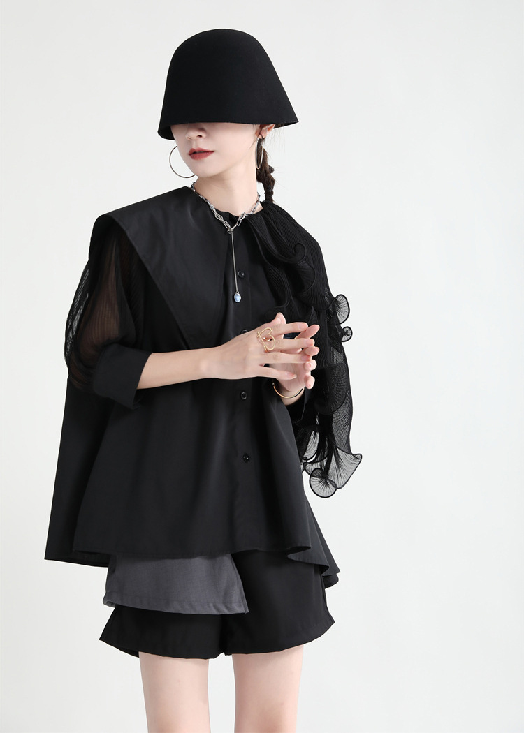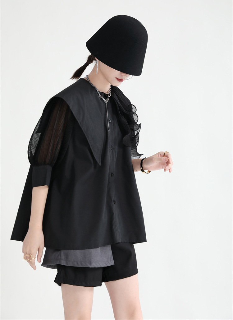 シアースリーブ ドッキングシャツ ボウタイシャツブラウス