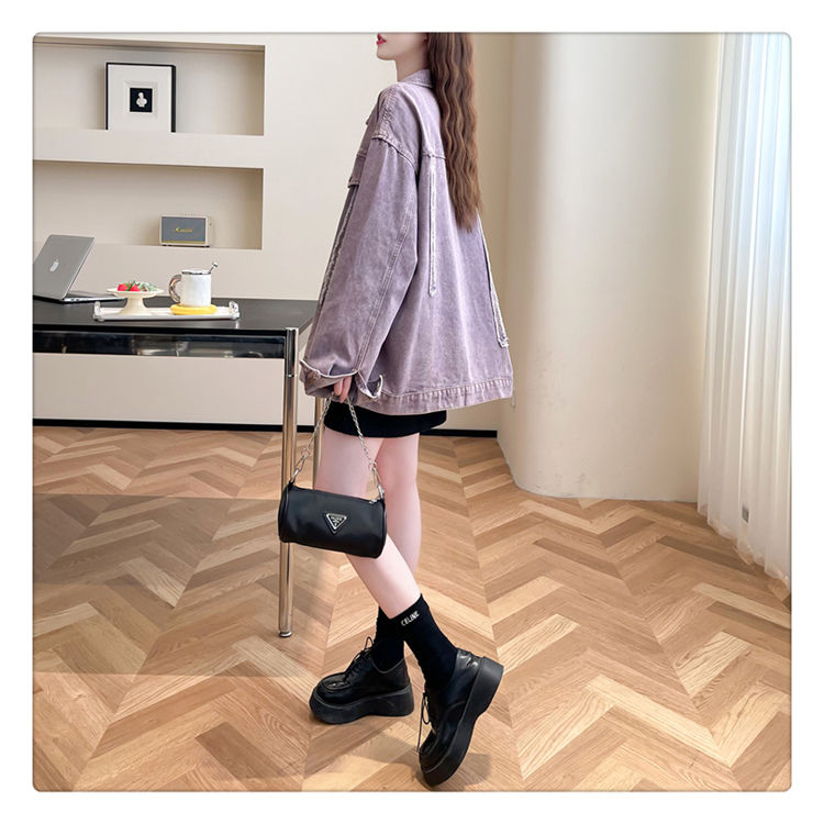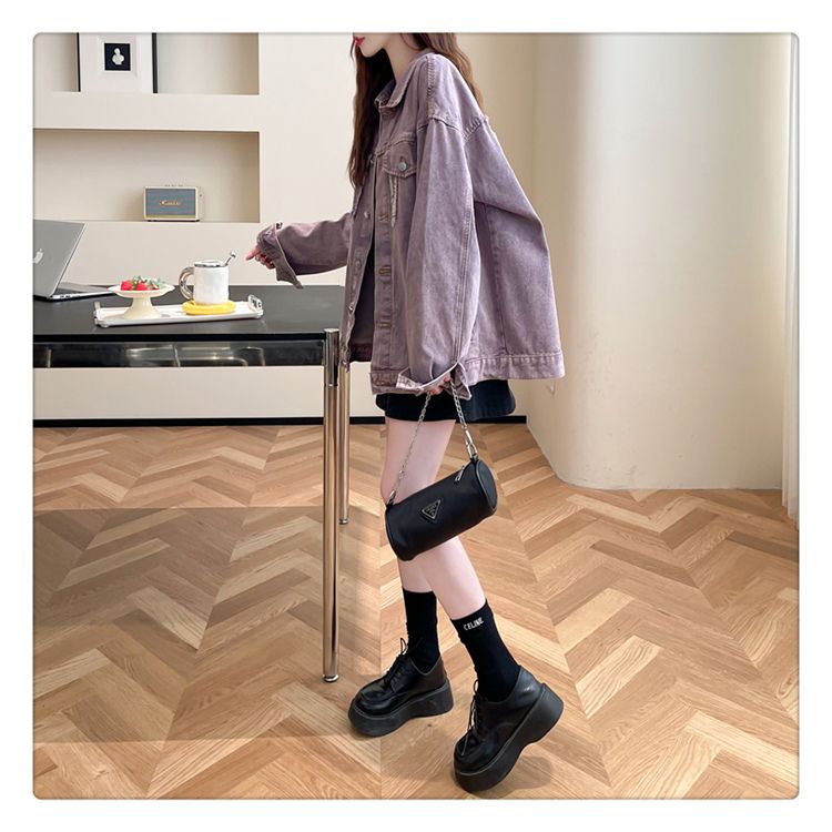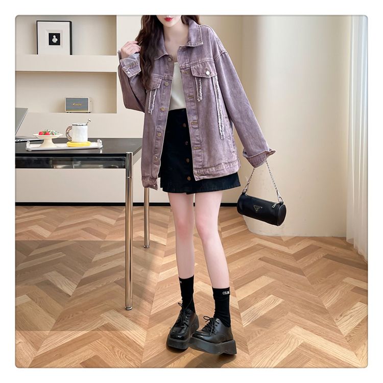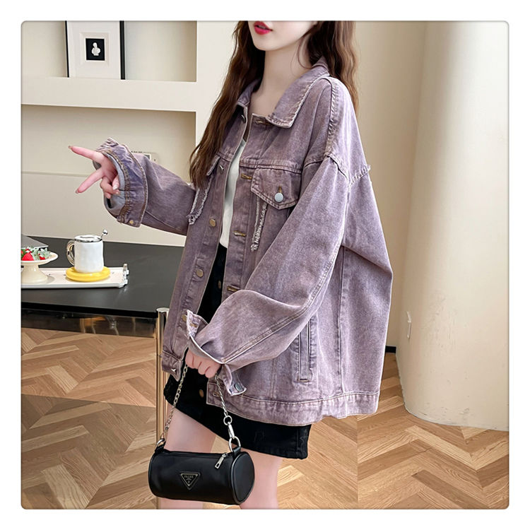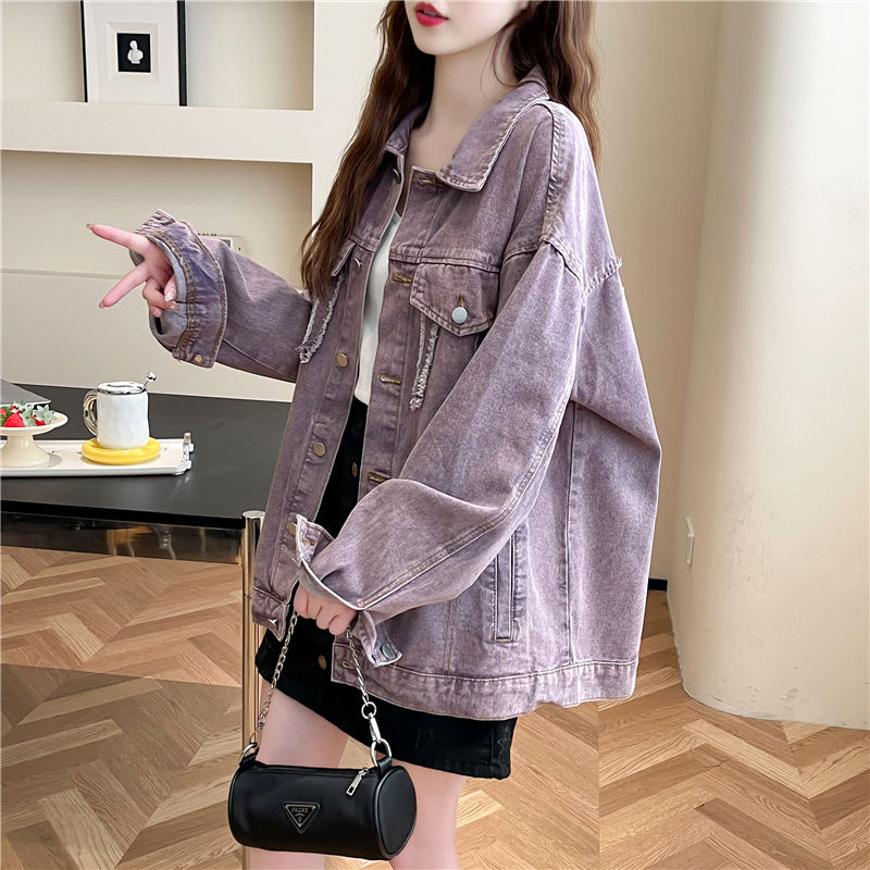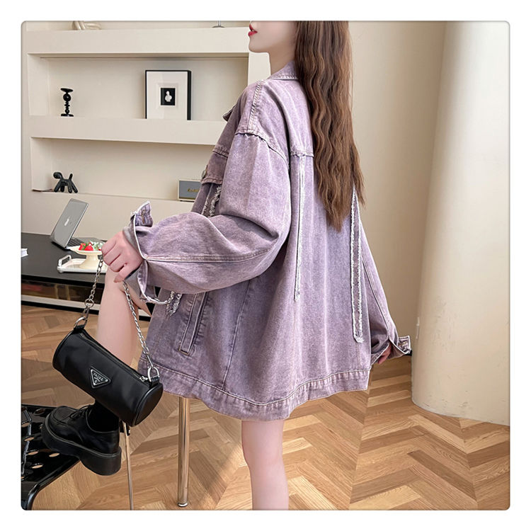 春秋 人気 パープルデニムジャケット 韓国ファッション 着痩せ 百掛け デニムコート カジュアル怠惰な風春アウター 大きいサイズ 体型カバー長袖トップス