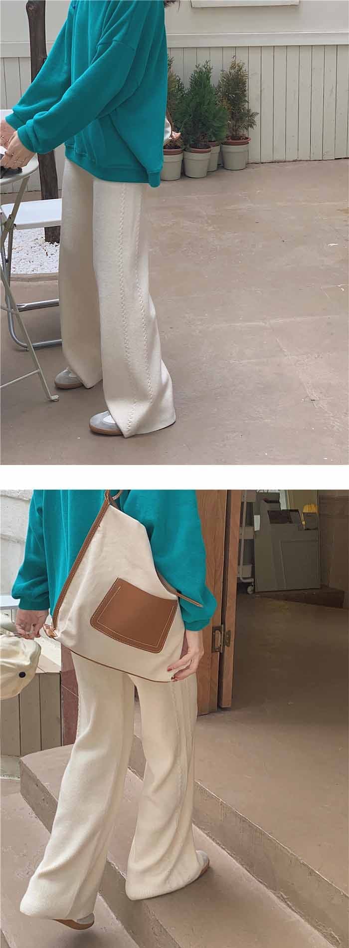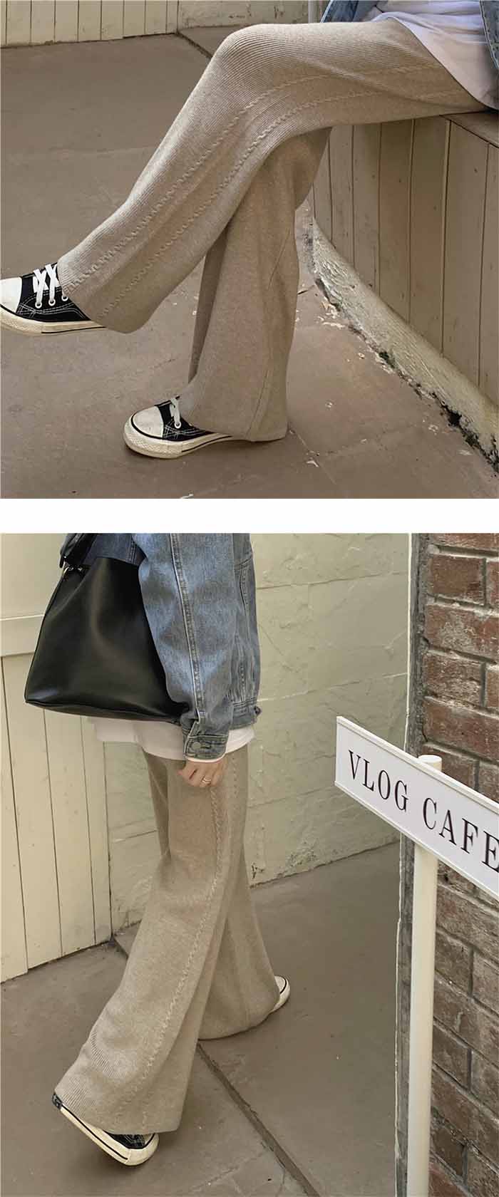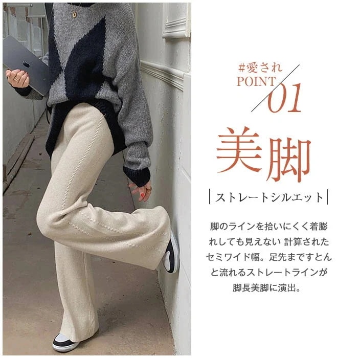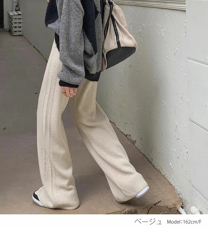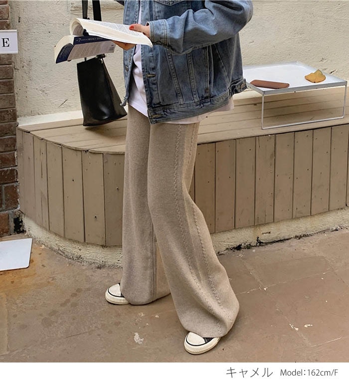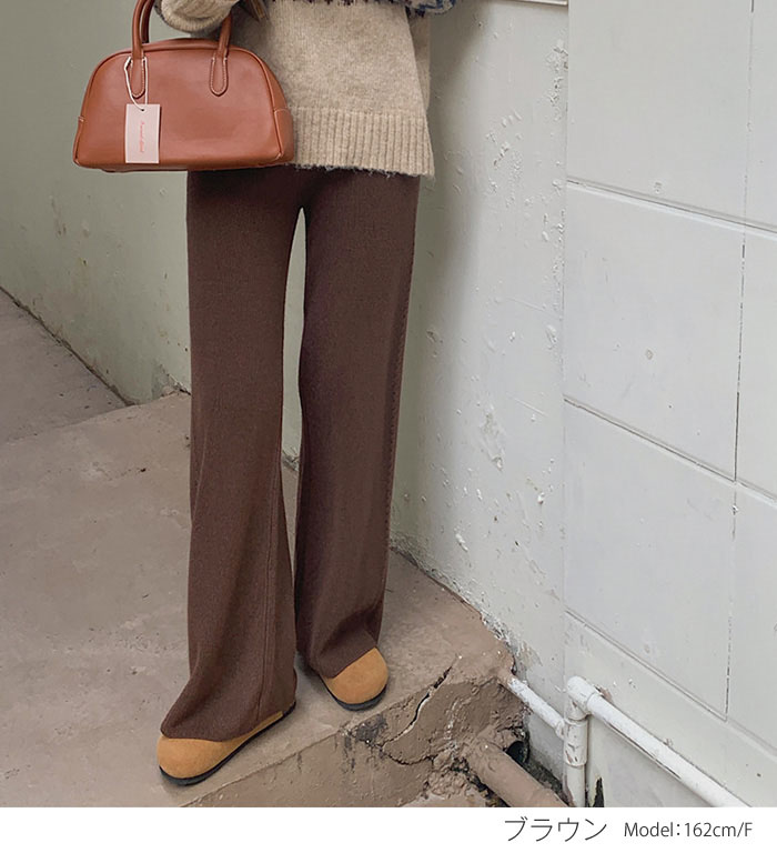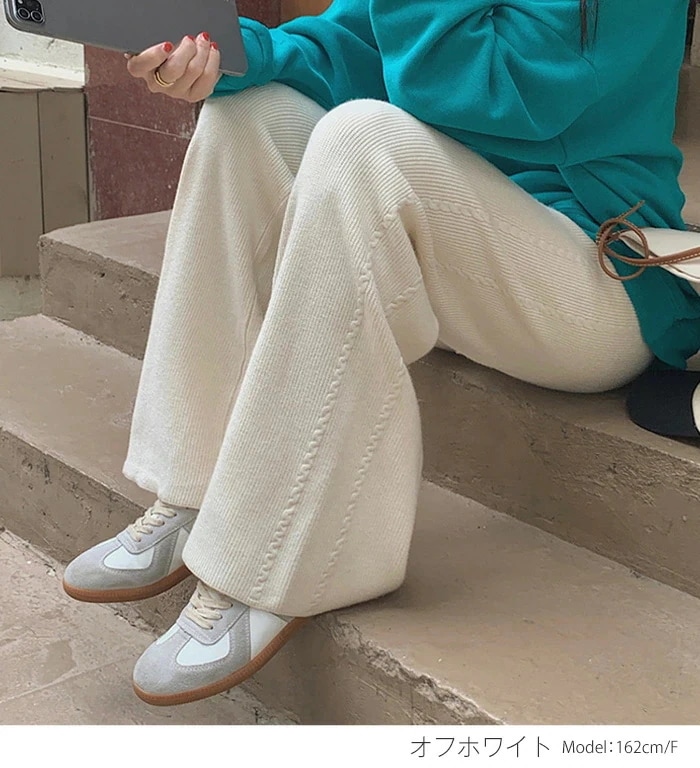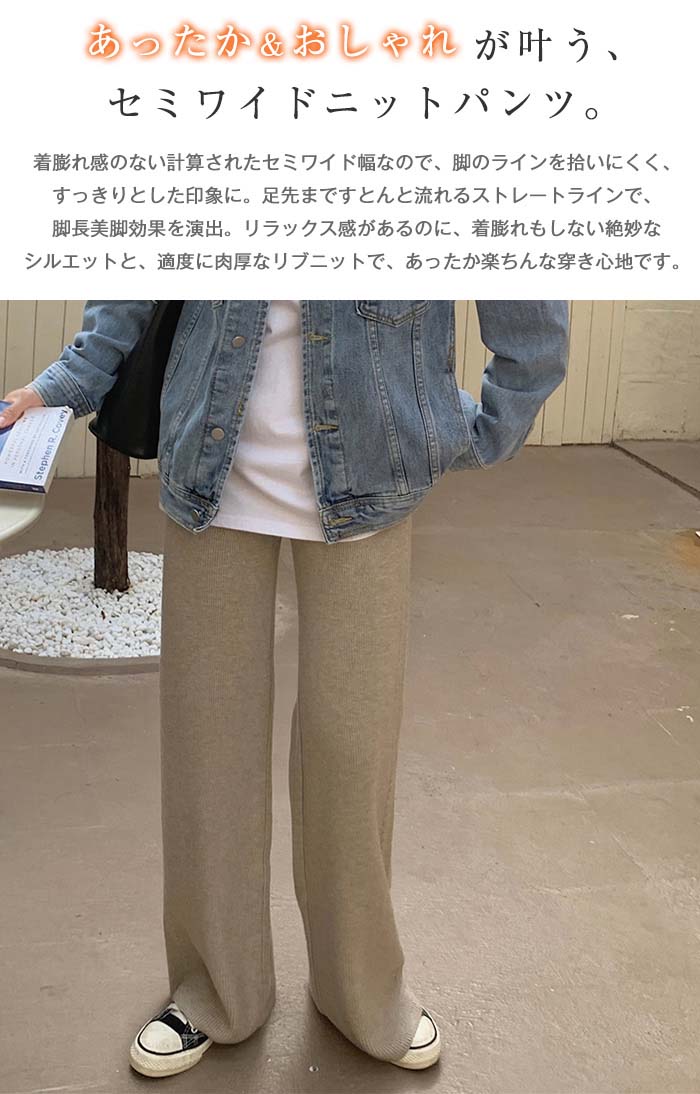 厚手 ニットパンツ レディース 秋冬 体型カバー ワイドパンツ リブニット ボトムス リブ ロング パンツ きれいめ イージーパンツ ワイド リブ ストレート リブパンツ 長ズボン ウェストゴム