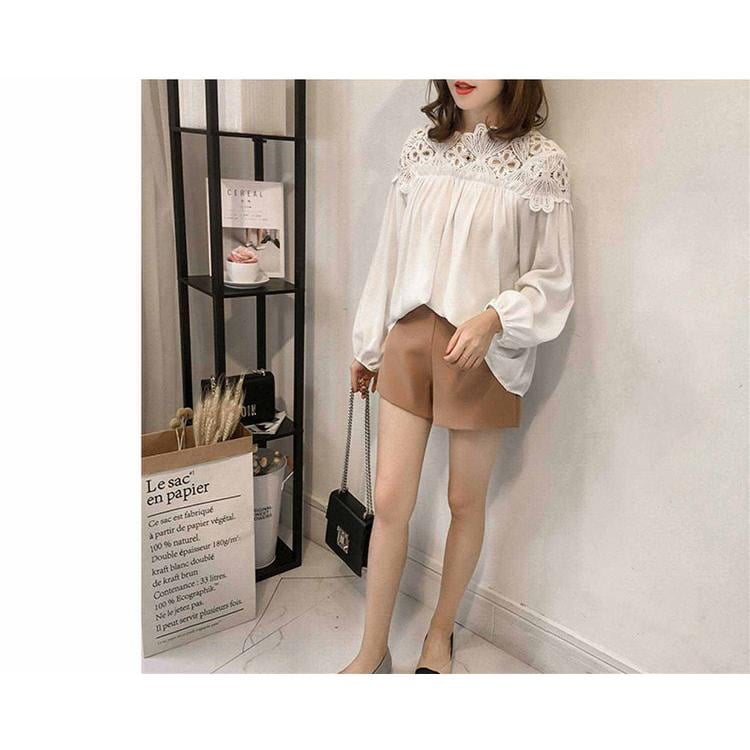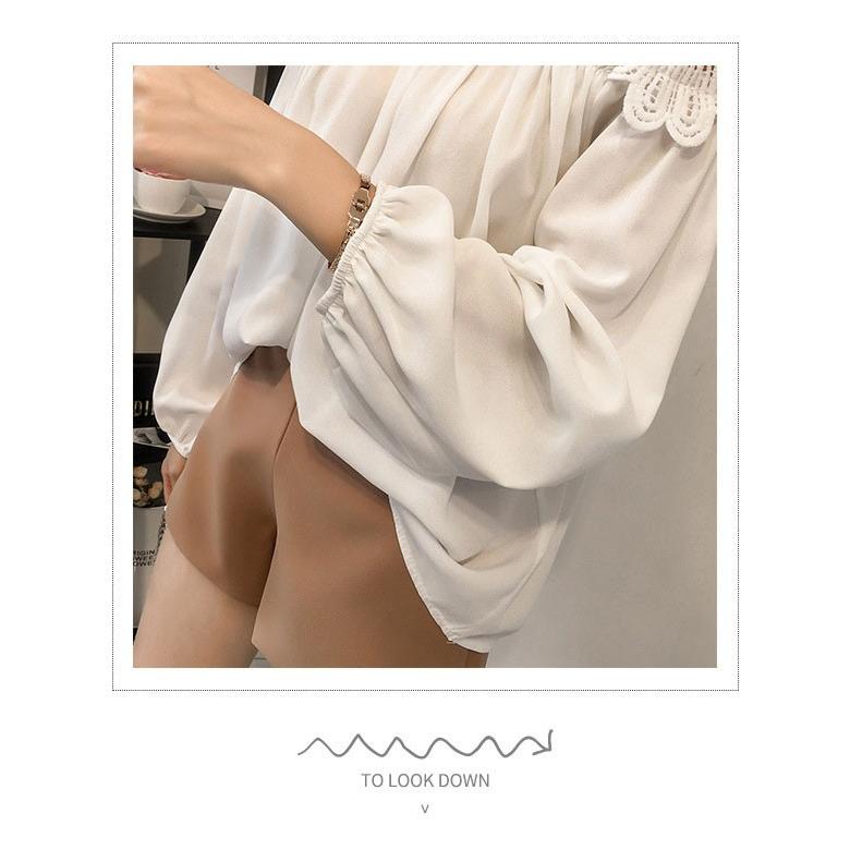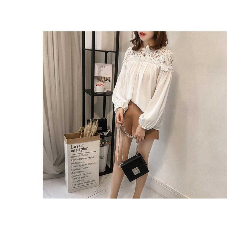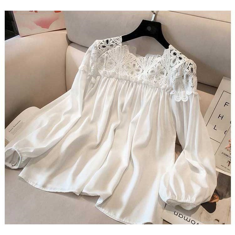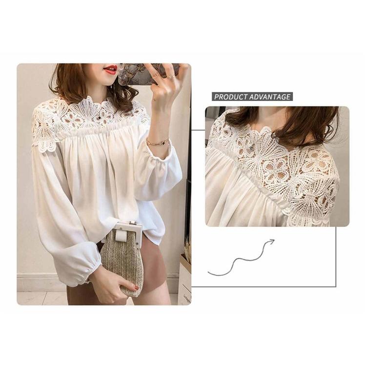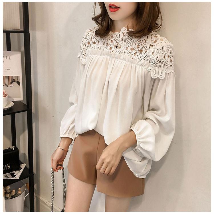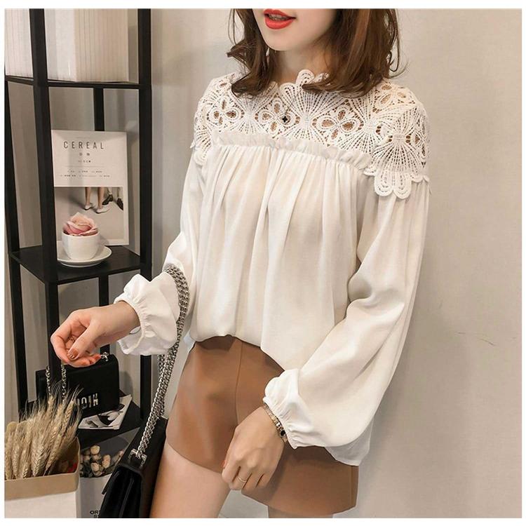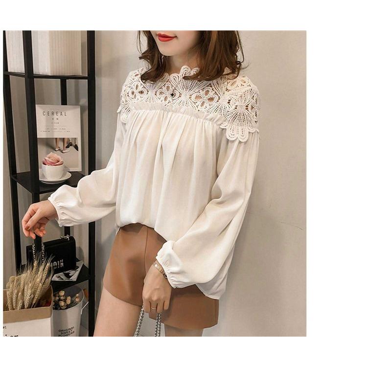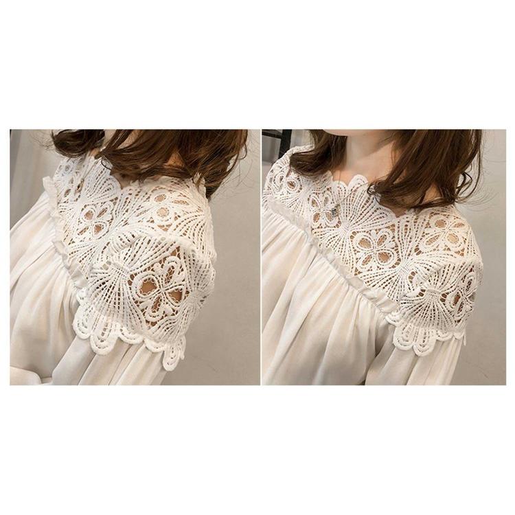 シャツ シャツブラウス ブラウス トップス プルオーバー レディース レース 透かし雕り 長袖 フリル スプライス シースルー シフォン ベーシック カジュアル風