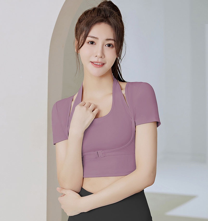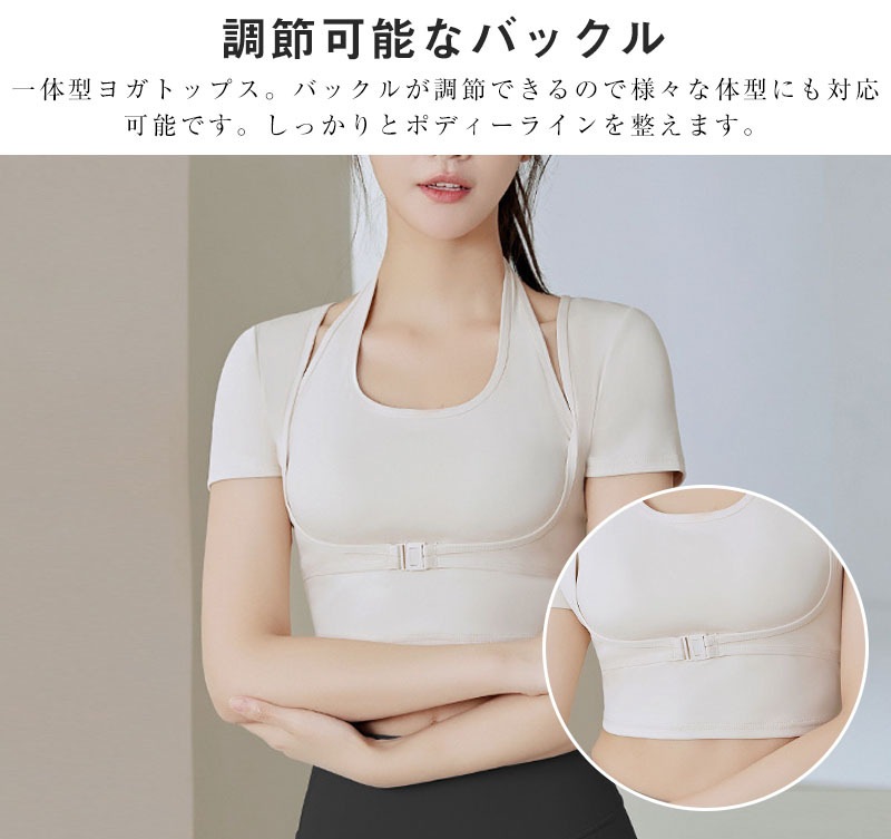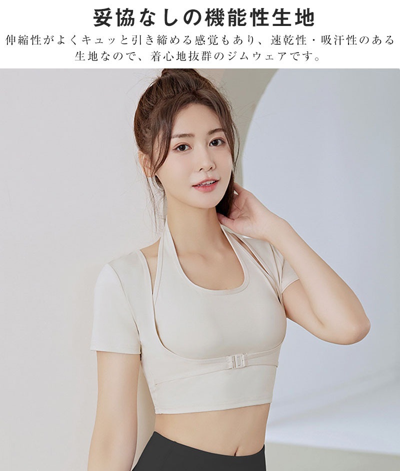 ヨガウェア トップス カップ付 パッド付き 半袖 ホットヨガ ブラトップ付 フィットネスウェア ヨガ ランニング マラソン ピラティス おしゃれ かわいい ヨガウェア リー