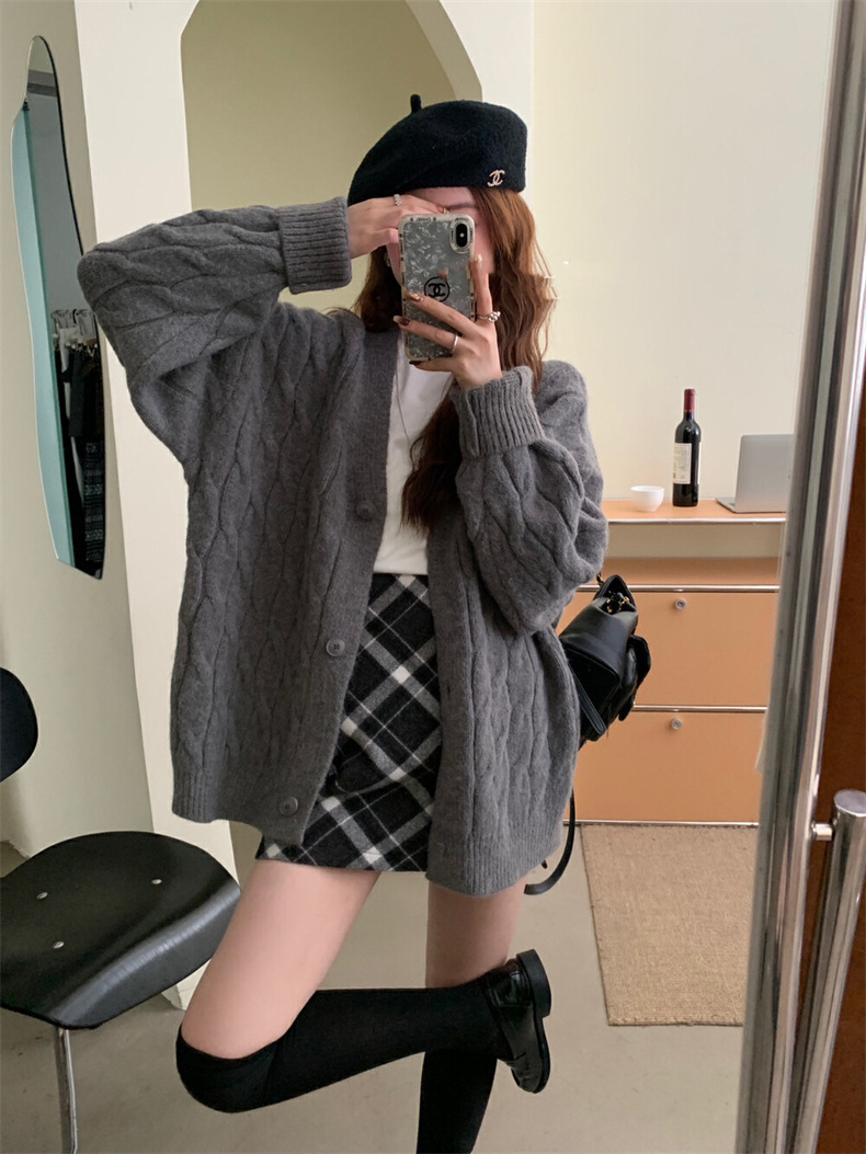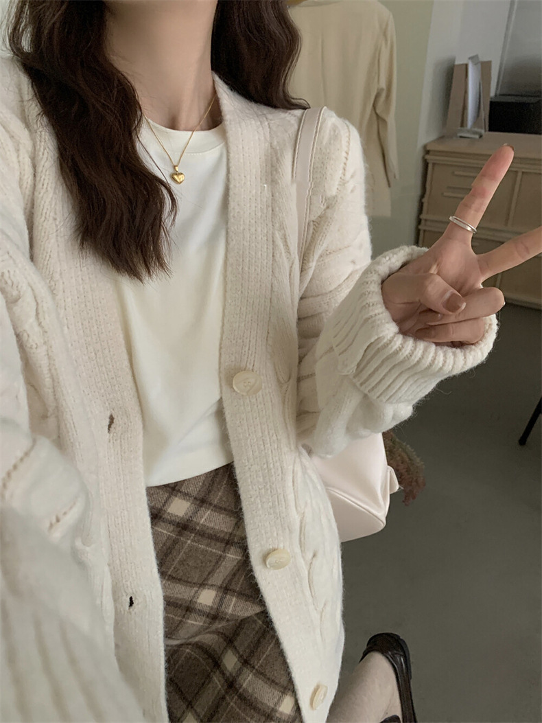 秋冬 制服カーディガン 無地日系ニットカーディガン ニットセーター Vネック 快適 トップス アウター セーター レディース ファッション気質通勤 長袖 大きいサイズ