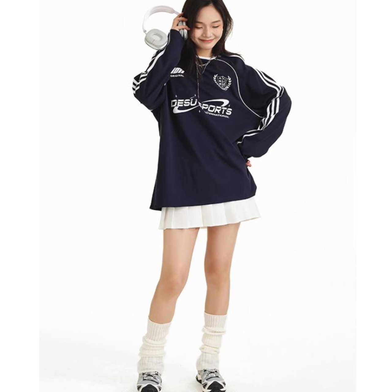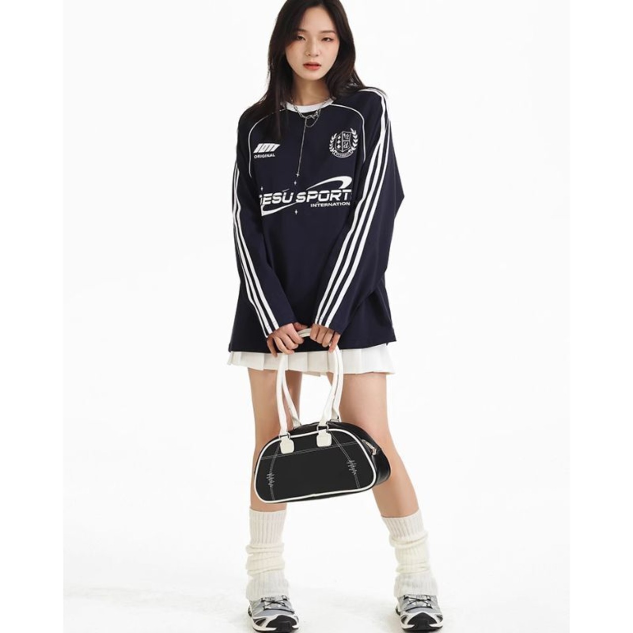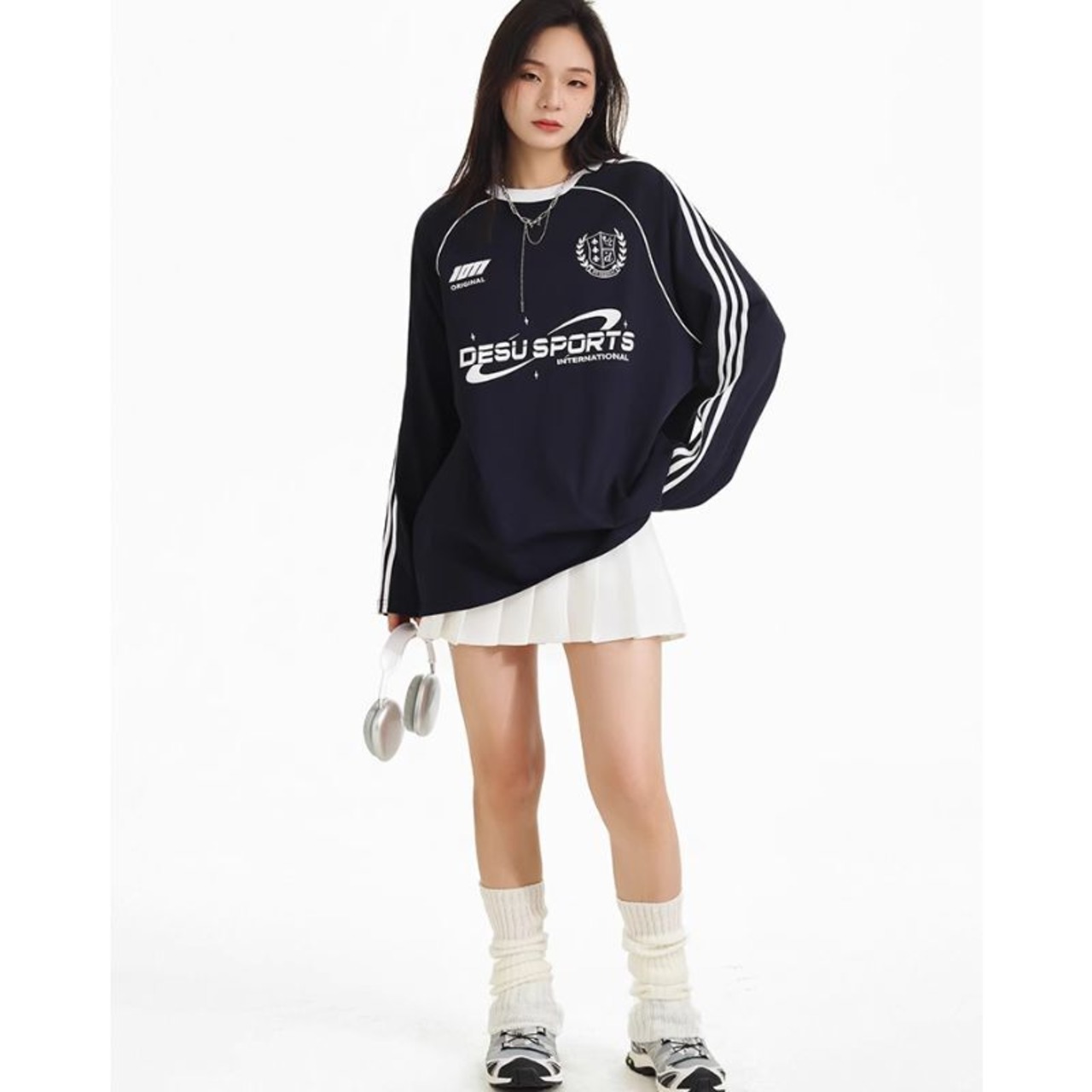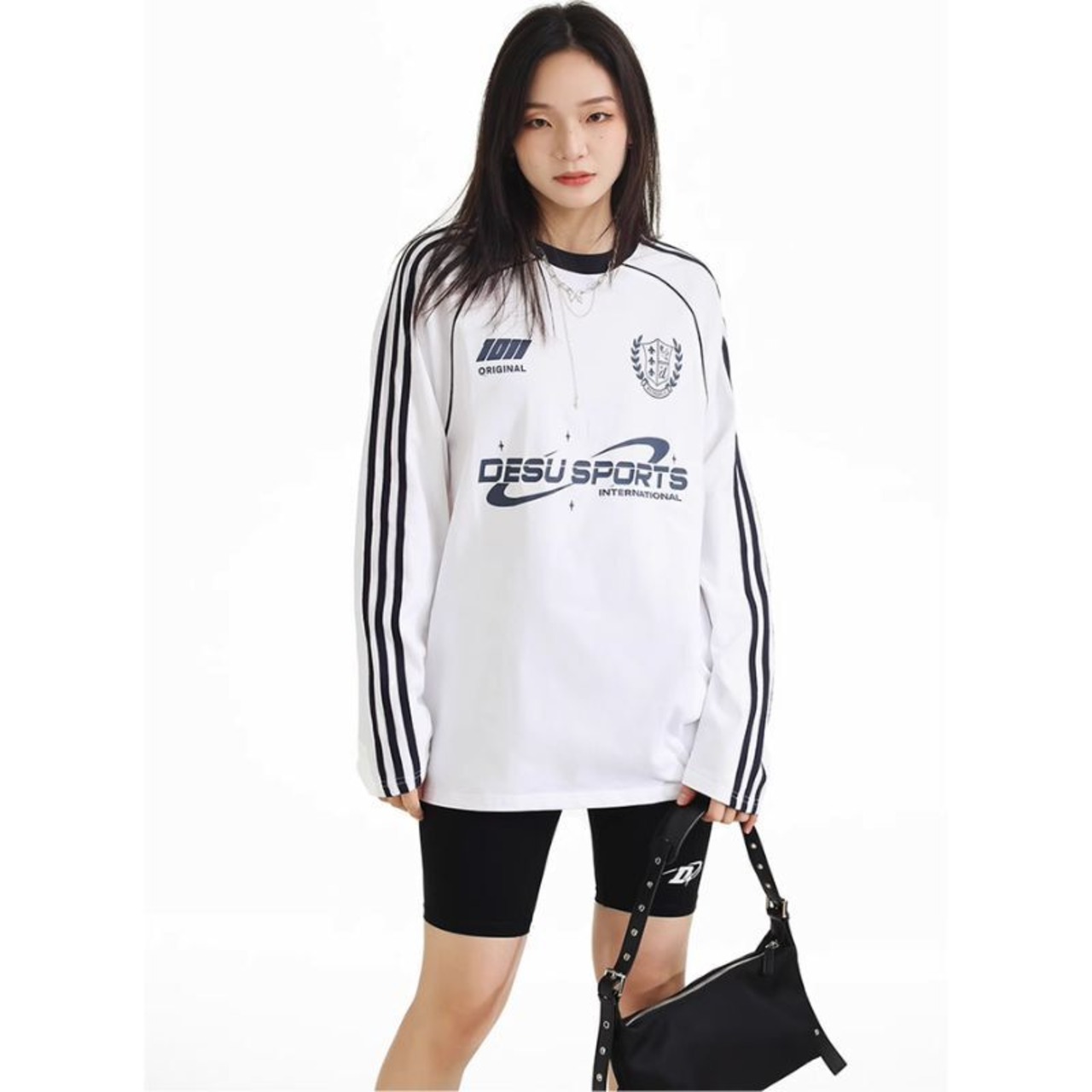 ロンT ビッグシルエット オーバーサイズ カジュアル スポーティー エンブレム 韓国ファッション Tシャツ カットソー