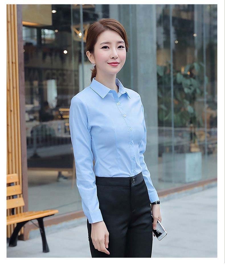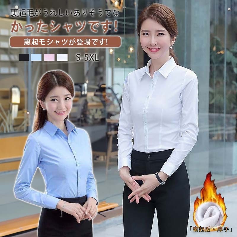 レディースファッション 長袖ビジネスシャツ 無地シャツ ワイシャツ レギュラーカラー 事務服用 裏起毛シャツ スタイリッシュなオフィススタイルに